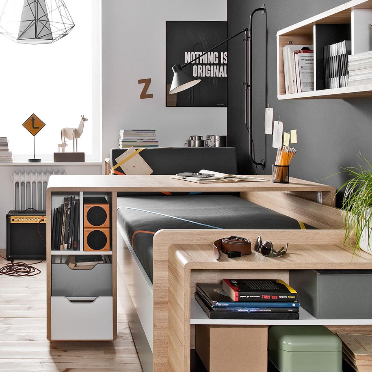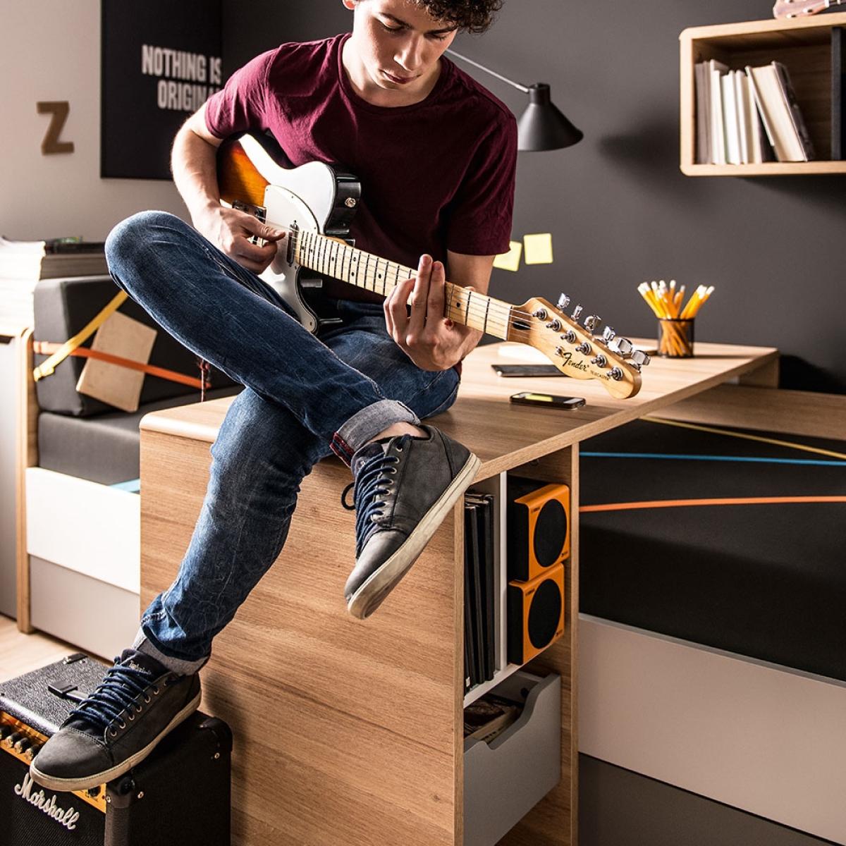 Contemporary and stylish, the Vox Evolve Kids Sliding Desk is perfect for smaller bedrooms. The simple white, grey and oak effect finish will look gorgeous and add a modern touch wherever it is placed and being on wheels, moving this beauty from A to B will be as easy as 1, 2, 3! With drawers and shelving, there will be plenty of space for all those bits and bobs whilst the desktop offers up more than enough room to create that latest masterpiece or knuckle down on that homework. Complimenting the Evolve Day Bed perfectly, sliding it back and forth when needed you're youngster will love having this over their bed! For a laptop to watch movies? To do some colouring? Or even to have some breakfast in bed! Whatever it's used for it will be a handy addition.