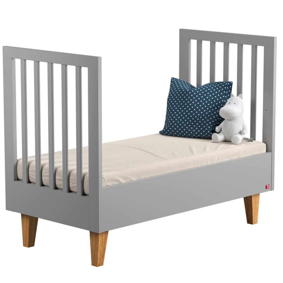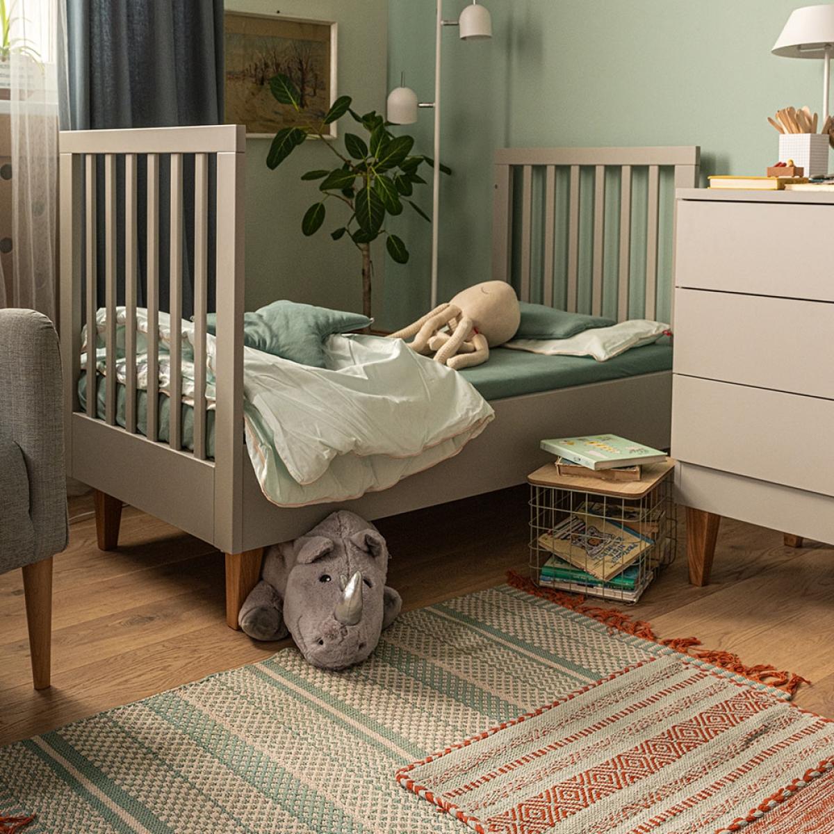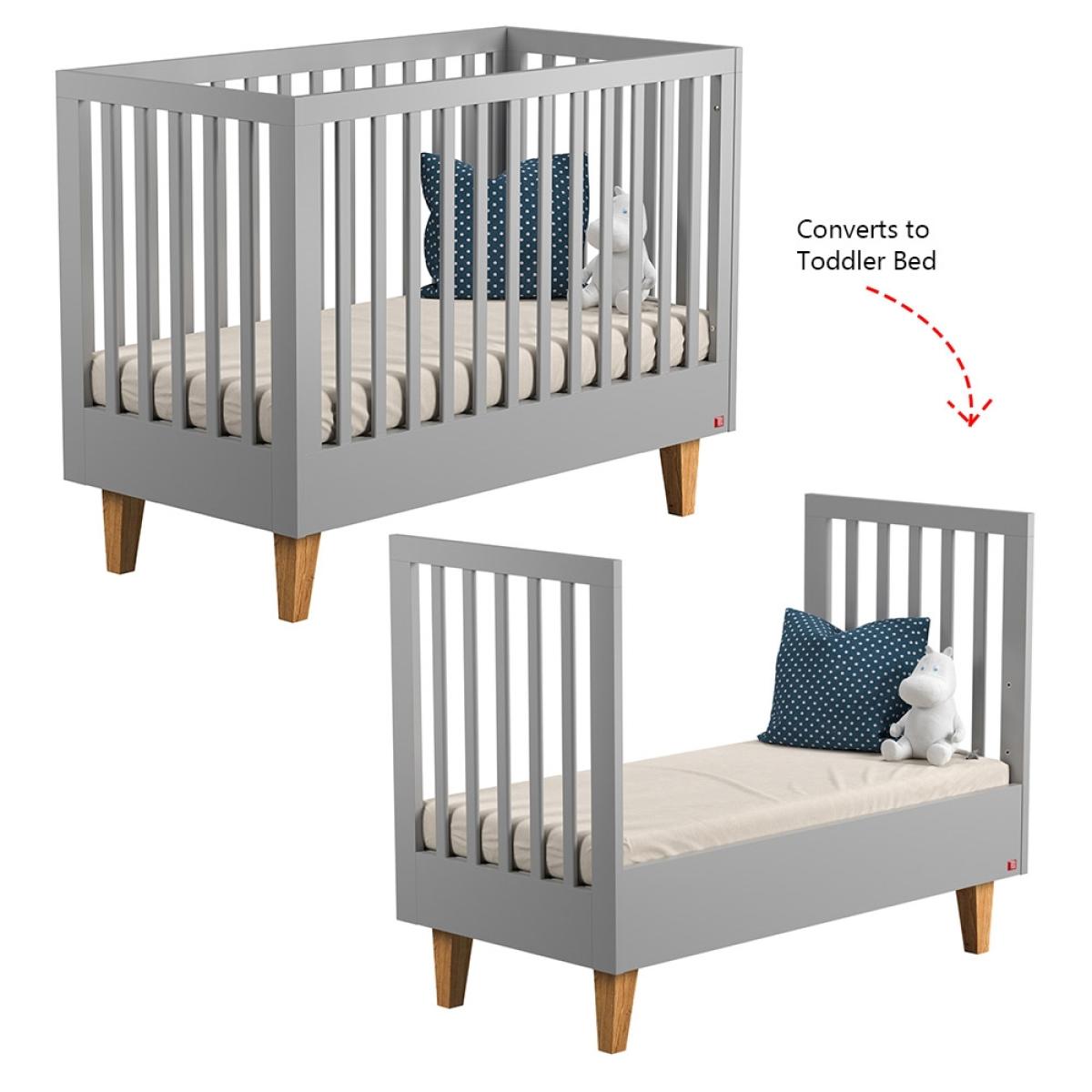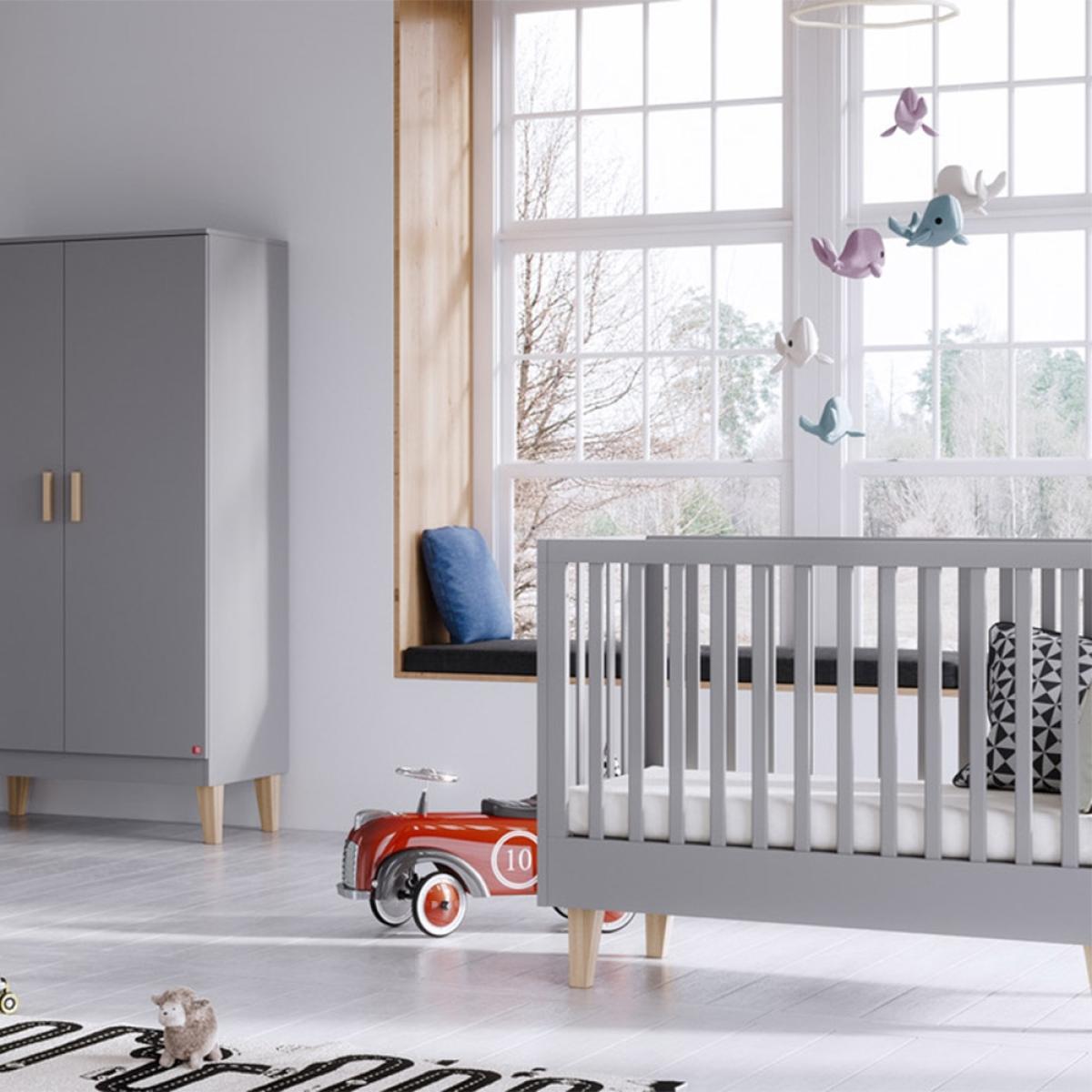 Your little one will have nothing but sweet dreams in the Lounge Baby and Toddler Cot Bed from Vox, a bed that will grow with them. When the time comes this wonderful cot can be transformed into a toddler bed by simply removing the sides, perfect for those first steps towards childhood! Beautifully crafted from high-quality laminated board and finished in light grey with solid oak legs, the clean lines paired with the simple colour combination will effortlessly inject scandi style into your nursery! With other fabulous pieces in the Lounge collection, why not complete the look and create the nursery of your dreams!.
