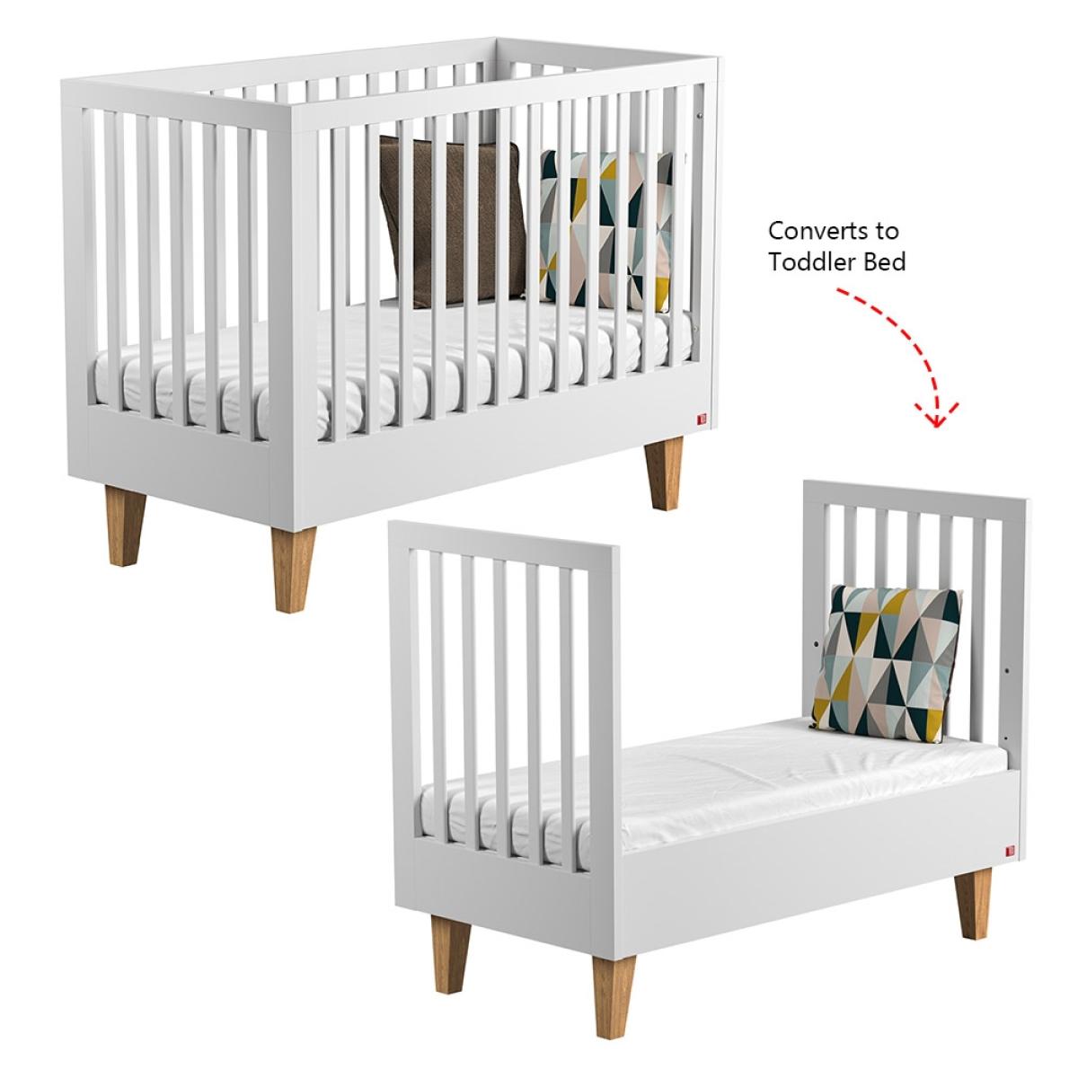 Your little one will have nothing but sweet dreams in the Lounge Baby and Toddler Cot Bed from Vox, a bed that will grow with them. When the time comes this wonderful cot can be transformed into a toddler bed by simply removing the sides, perfect for those first steps towards childhood! Beautifully crafted from high-quality laminated board and finished in white with solid oak legs, the clean lines paired with the simple colour combination will effortlessly inject scandi style into your nursery! With other fabulous pieces in the Lounge collection, why not complete the look and create the nursery of your dreams!.