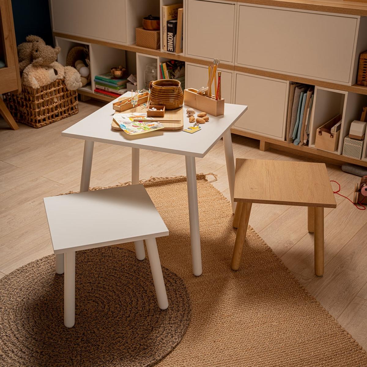 I love this little stool for its simple, contemporary design and versatile appearance - the oak effect adds warmth without overpowering a space. It works particularly well in modern or Scandinavian-inspired interiors, where clean lines and functional furniture are key. Its compact size makes it ideal for stacking in playrooms or hard-to-fit corners, and it can double as a side table or extra seating. For styling tips, pair it with colourful cushions or small decorative items to soften its look, or keep it minimal for a sleek, understated vibe. This stool is a practical choice that blends well into a variety of kid-friendly spaces while adding a touch of modern charm.