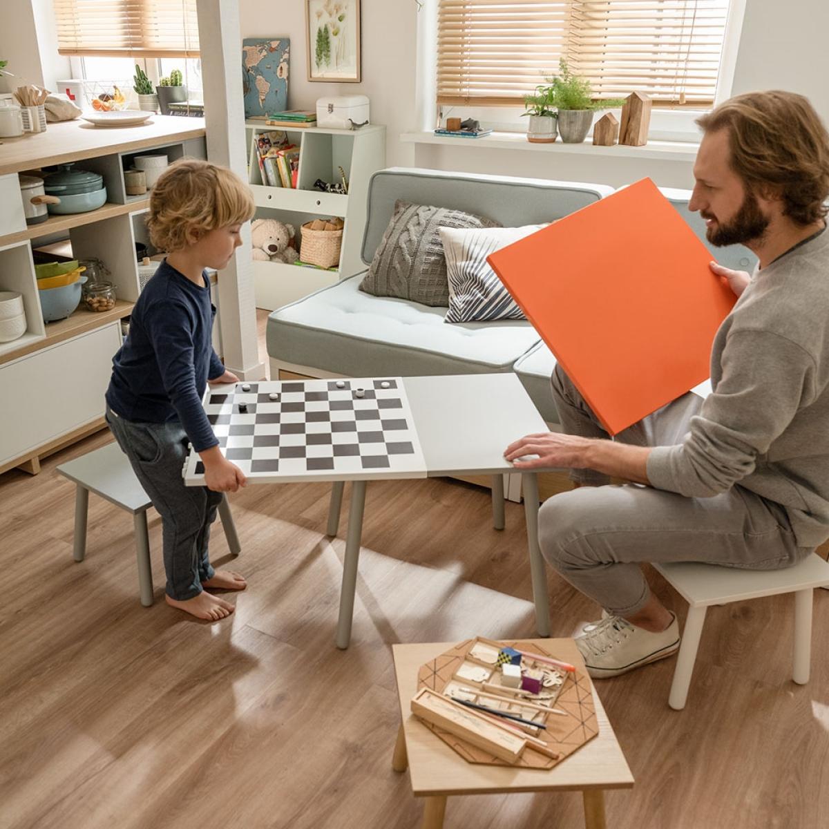 Designed to fit neatly beneath the Match table, create the perfect spot for some arts and crafts or a game of draughts with the Match Kids Stool from Vox. The simple design makes it a perfect addition to your little ones bedroom plus make it easy to move around the house! Available in white, grey and oak effect, with a matching table, why not complete the set!.