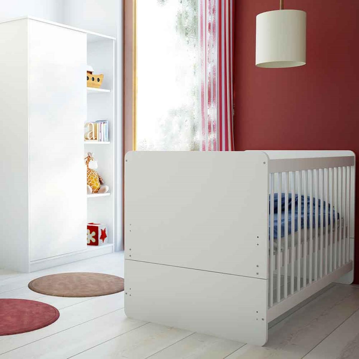 From birth and beyond, the Vox Maxim Cot Bed will grow as your child does! Whether you're having a little man or miss, the white finish can be teamed with any choice of colours, so finding matching decor, accessories and bedding will be a breeze! Height adjustable, as your baby starts to gain confidence, lower the bed to ensure they're kept safe and encourage independence with the removable bars, allowing them to get in and out when they please. And when they're not so mini anymore, simply convert into a comfortable junior bed and continue using the gorgeous frame. With a matching wardrobe and changing storage unit available, make sure you're ready for when your little bundle arrives!.