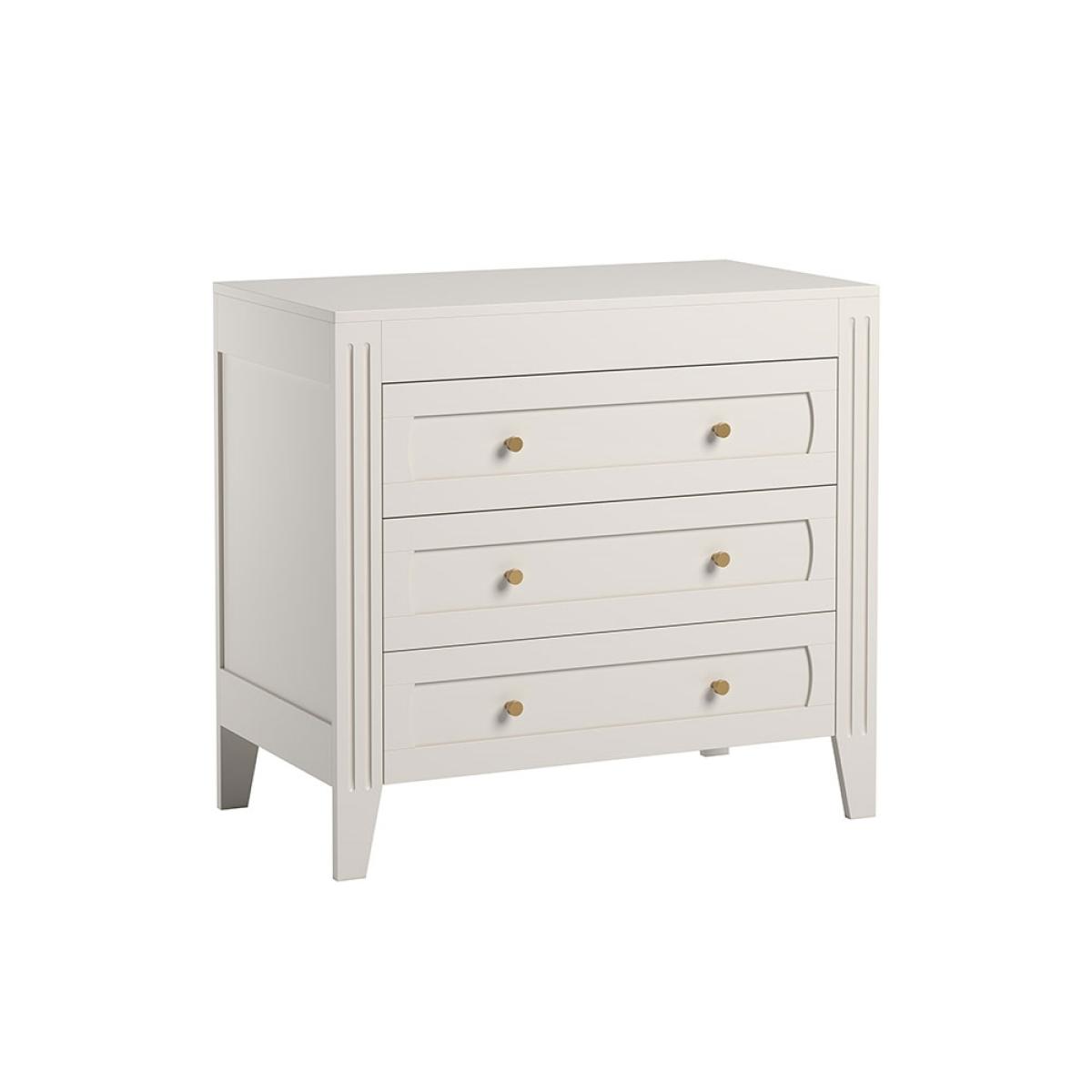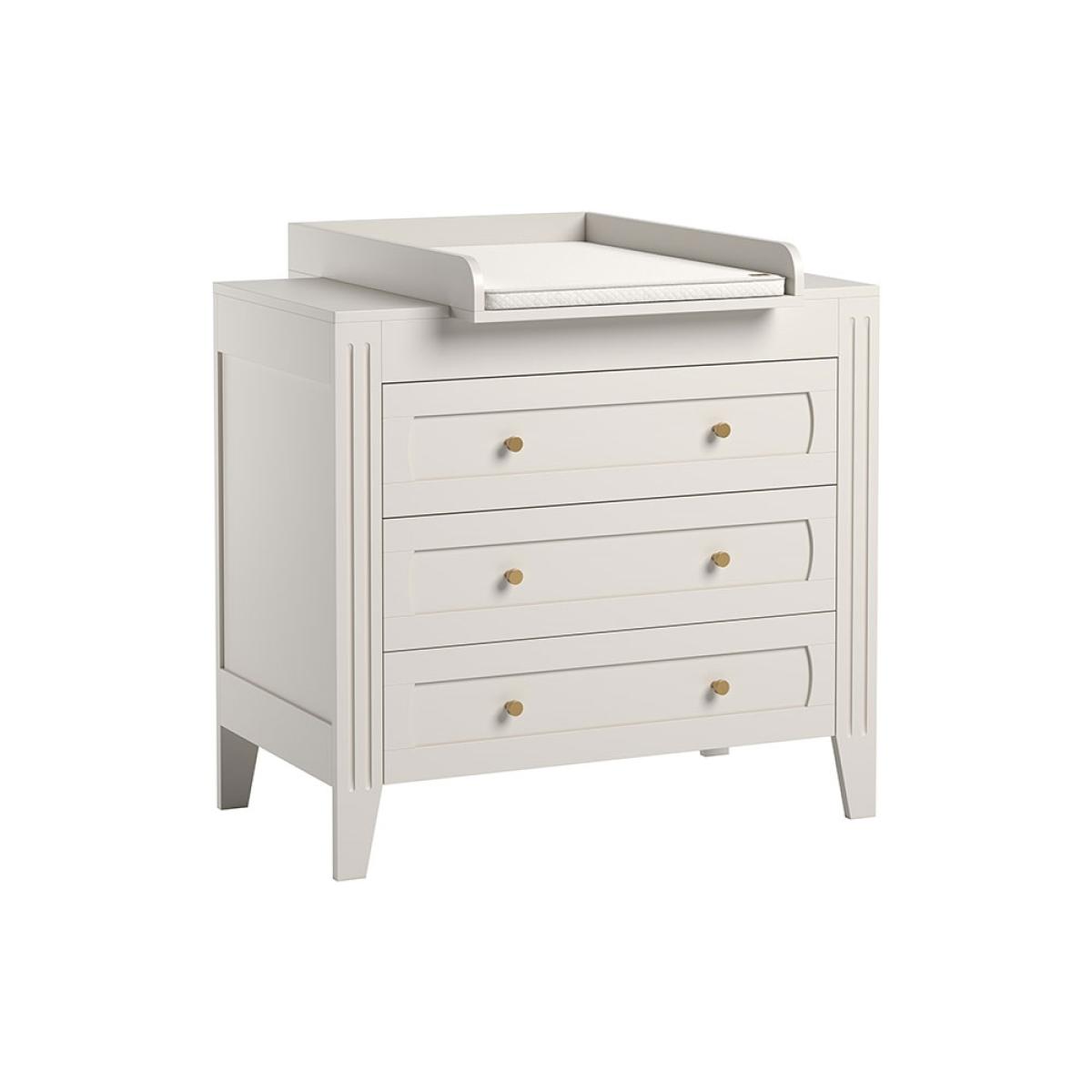 The timeless Vox Milenne Chest of Drawers would look perfect in the nursery or kids bedrooms! Available in a choice of colours - the delicate details, gold handles and vintage style panelling make this one stylish storage solution. Fold away clothes, store essentials and keep their bedrooms neat and tidy - what a day it will be when they start helping out! The three spacious drawers are soft close for added safety, but are also great when you don't want to wake your kiddies from their slumber. With the option to add a removable changing table top, transform the Milenne Dresser into a baby changing unit and just as easily convert it back once they've outgrown it. Add the matching wardrobe for extra storage and the adjustable cot bed to complete the look!.