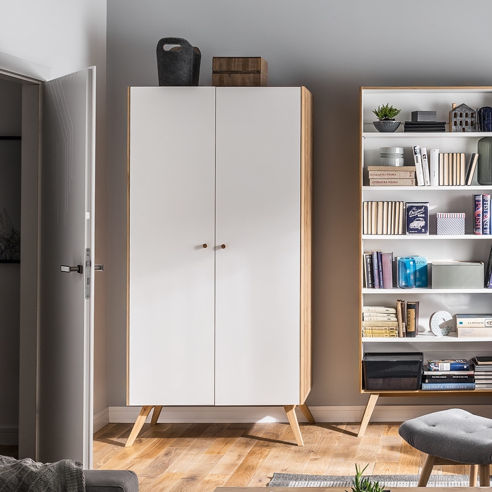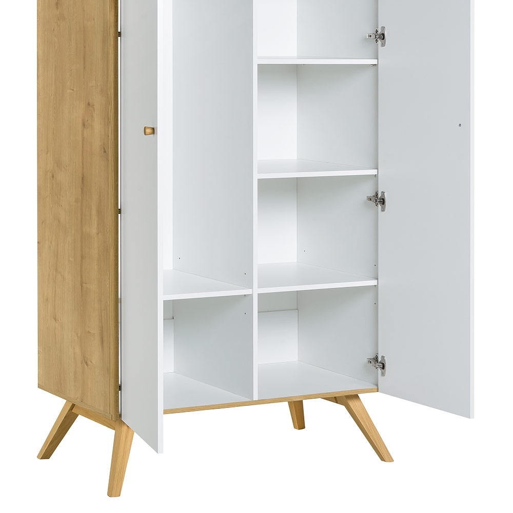 Keep clothes crisp and crinkle-freein the striking Nature 2 Door Wardrobe in Oak and White, from Vox. With 2 solid doors opening up to reveal an abundance of storage space; the clean lines and natural wood accents make this a welcome addition to any modern home. With 8 separate sections, even odd socks and novelty ties can have a home. Including a large spacious compartment; neatly hang shirts, blouses, suits and dresses upon the sturdy clothes rail. With other stunning pieces available from the Nature collection, give your home a touch of the contemporary.