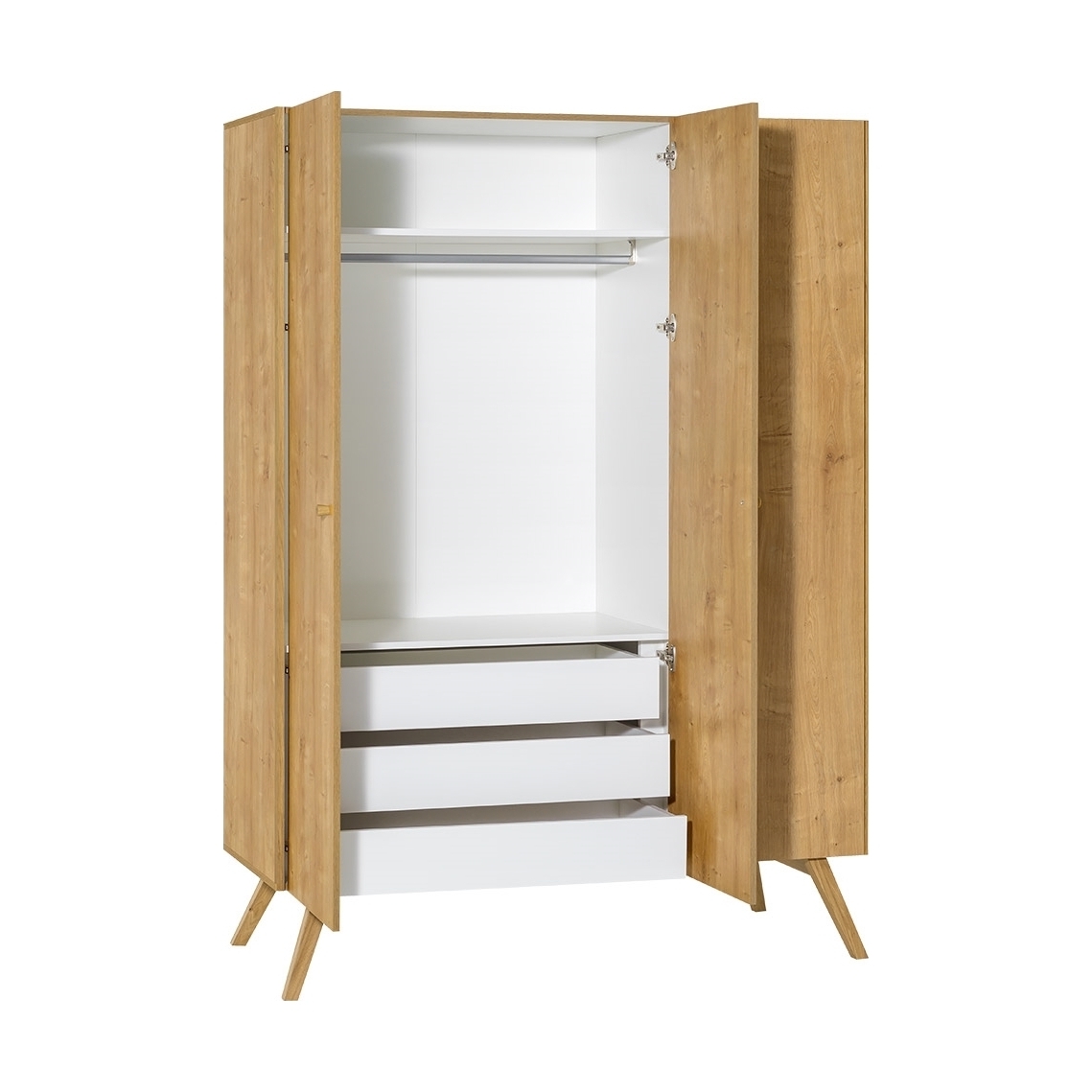 The Nature 3 Door Wardrobe from Vox gives you storage and more. With all the space this bad boy has to offer, you'll have no trouble keeping your clothes neat and tidy. From jeans and jumpers to dresses and blazers, even after you've got everything in there will still be enough space for the kitchen sink (only if you feel the need that is). The simple design and clean lines will add a touch of Scandinavian style wherever it is placed and is sure to suit any interior style! With hanging space, shelves and drawers, your clothes will be organised to perfection.
