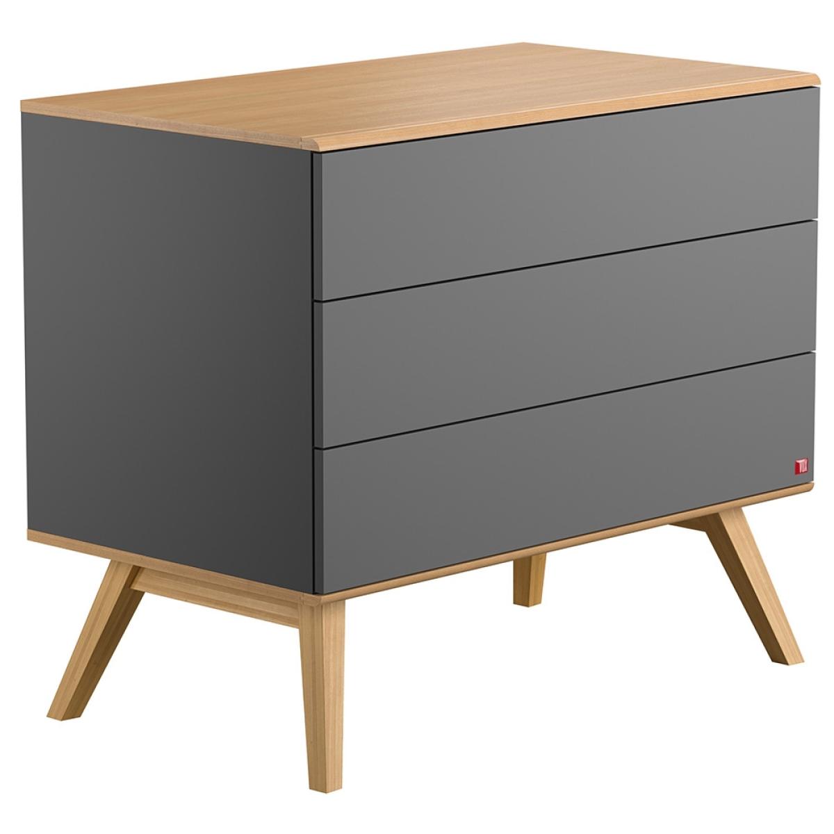 The Nature Cot 3 Piece Nursery Set from Vox is just what you've been looking for to inject some Scandi style into your babies room! The simple shapes and clean lines allow you to create one stylish nursery. This stunning set comes complete with a cot, to give your baby a perfect nights sleep. A wardrobe to house those mountains of clothes we just can't help but buy, it's not our fault they're so adorable! Lastly a chest of drawers, with the option to add a changing table top you can make the ultimate baby changing station! The three drawers offer up all the space you require for those essentials whilst changing your little one's nappy and being removable when it is no longer needed you are left with a lovely chest of drawers for your youngster to grow up with! Whether it's a girl or a boy, the dark grey paired with the solid oak, this beautiful set will fit right in!.
