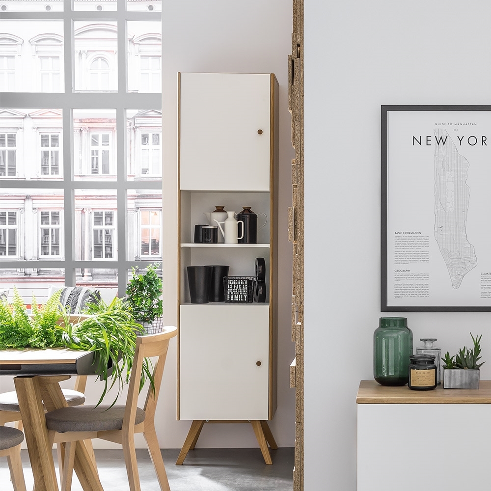Show off your treasures in style with the Nature Tall Display Cabinet with Lights from Vox. With two concealed compartments (perfect for hiding the clutter!) and two open compartments to display your knick-knacks. Be it those unusual ornaments, that collection of quirky books or just random things you're not sure where to put! No matter what you keep in this stunner it will be a welcome addition and a wonderful storage solution! Pop it in the living room, dining room or the kitchen, the simple style will suit any interior!