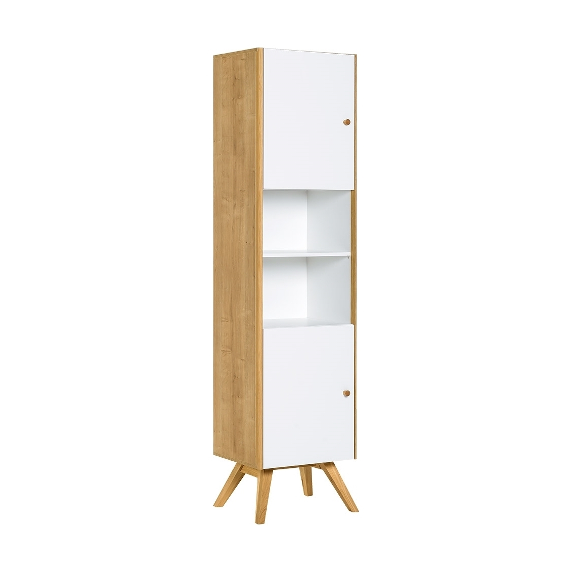 Vox Nature Tall Display Cabinet with Lights in White & Oak Effect