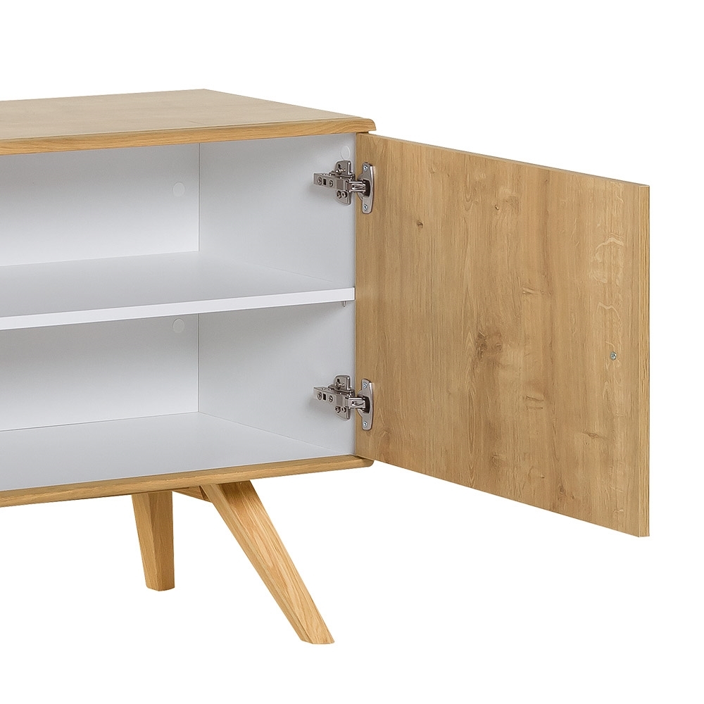 I love this sideboard for its clean, natural look that fits seamlessly into both contemporary and Scandi-inspired interiors. The oak-effect finish adds warmth without overpowering a room, making it a versatile piece for living rooms, dining areas, or even bedrooms. Practical styling tips include pairing it with neutral or muted tones for a calming vibe, or adding textured accessories like woven baskets or ceramic vases for visual interest. Its ample storage makes it great for keeping clutter out of sight, while the surface is ideal for displaying everyday essentials or decorative accents. I’d keep the setup simple and minimal for a sleek, modern feel-this is a piece that works best when let to stand out without too much fuss.