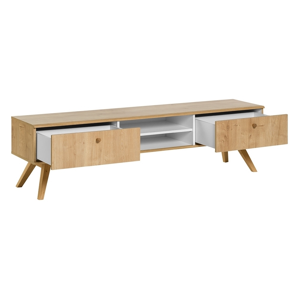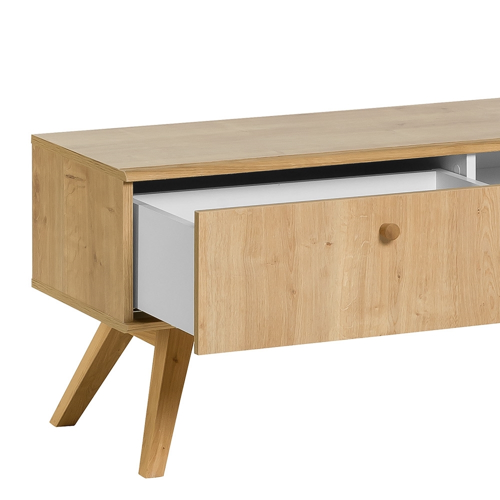 Keep your movies, consoles and remotes organised to perfection with the Nature Wooden TV Stand from Vox. No more trailing cables or losing those TV accessories when you've got this unit to store it all in! With simple clean lines and a neutral colour palette, it will suit any interior and is sure to add a touch of scandi style into your home. The two drawers and two open compartments offer up plenty of storage space for those DVD and games collections, this TV cabinet will be a welcome addition!.