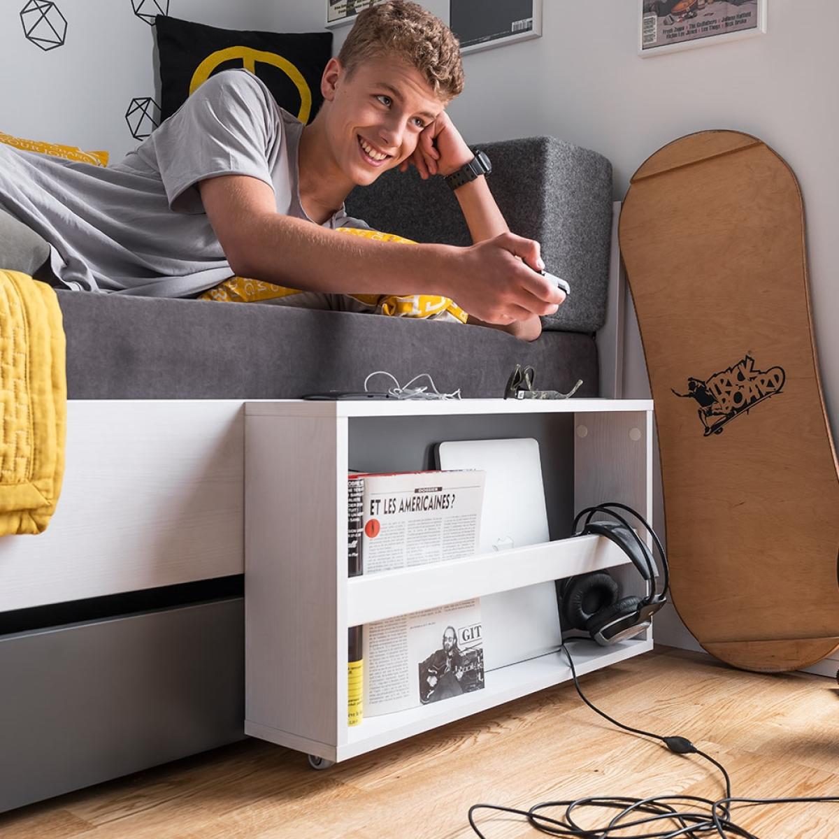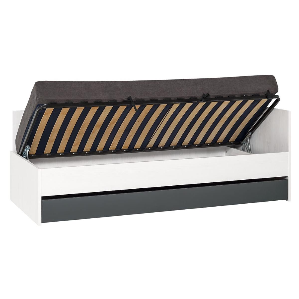 Simple yet functional, the Vox Nest Ottoman Bed would certainly be a handy addition for any home. Perfect for smaller bedrooms, with a lifting mattress it's great for that little bit of extra storage space for spare bedding, books and toys. You could even upgrade to a trundle drawer for even more storage space or a trundle bed for those sleepovers or unexpected guests. Finished in larch white and graphite, the simple colour palette is sure to suit any room no matter the interior style plus makes the move from kiddies room to teen room that much smoother, bonus! Pop a few cushions down and the Nest Day Bed is a wonderful place to chill out and relax during the day, then at night a cosy place to sleep!.