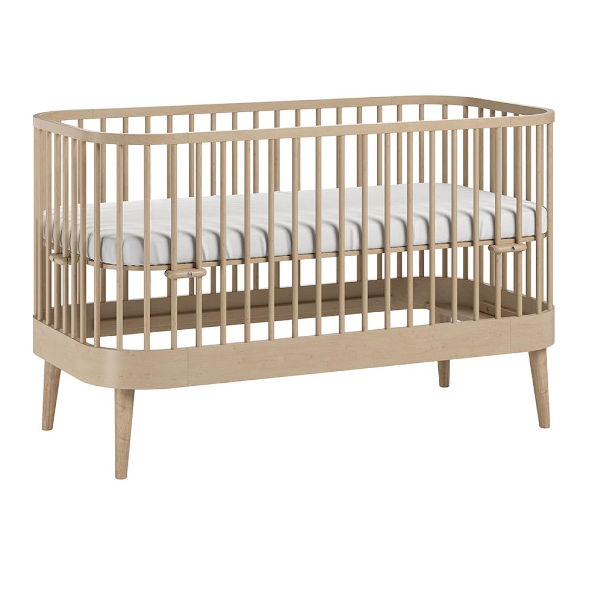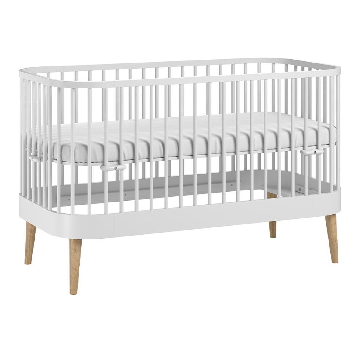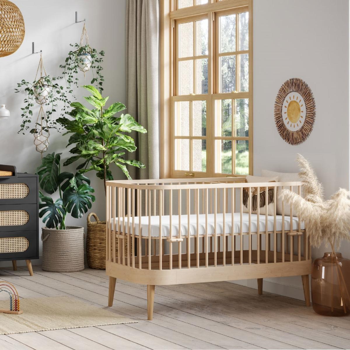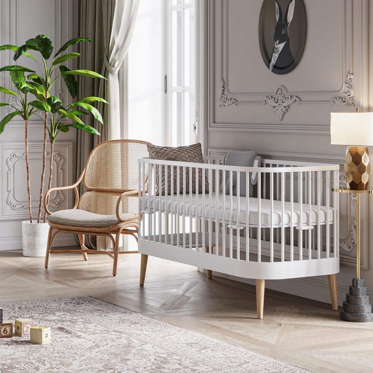 The Vox Paris Baby Cot Bed would be a special choice for your newborn. The unique oval cot bed design features curved lines, open slats and natural oak legs to create an elegant crib for your new member of the family! The chic wooden frame can be adjusted to suit your baby as they develop and grow. The mattress can be raised or lowered depending on your needs. We'd recommend starting off with the mattress at the highest level when they're newborn so you can soothe and fuss over them without having to bend and strain. Once they're bigger simply lower to the next level to prevent quick escapes. And finally the gorgeous wooden cot can be converted into a toddler bed with guard rails, to continue using it for a few years before it's time for their big bed. Available in a choice of colours, will you opt for bold black, clean white or keep things natural and understated with Birch?.