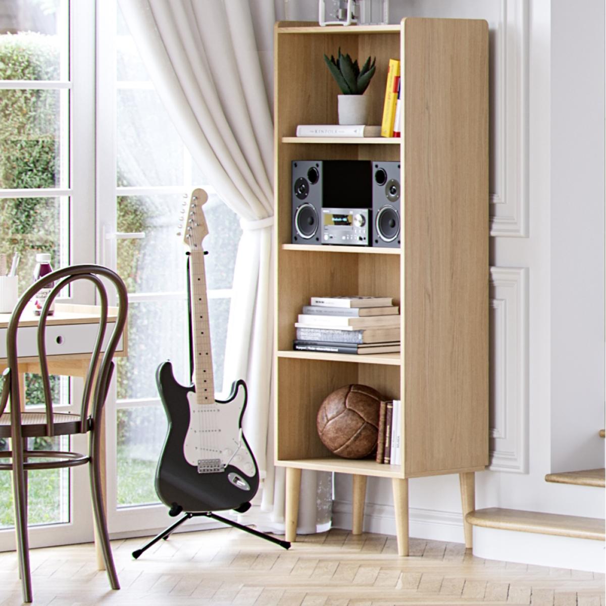 Looking for a new home for your favourite hardbacks? The Vox Retro Bookcase is ready and waiting! Store books, trinkets, photo frames and of course a leafy friend in each of the 4 compartments. With raised sides, you can even utilise the top of the unit. Perfect in the study, hallway, living room or the kids bedrooms; the contemporary Oak effect finish will bring a Scandi element to your chosen space. Pair with the matching desk to create a quiet spot to retreat to, or why not refurnish a whole room with the other matching pieces from the Retro collection? With customisable coloured doors available, create a look personal to you!.