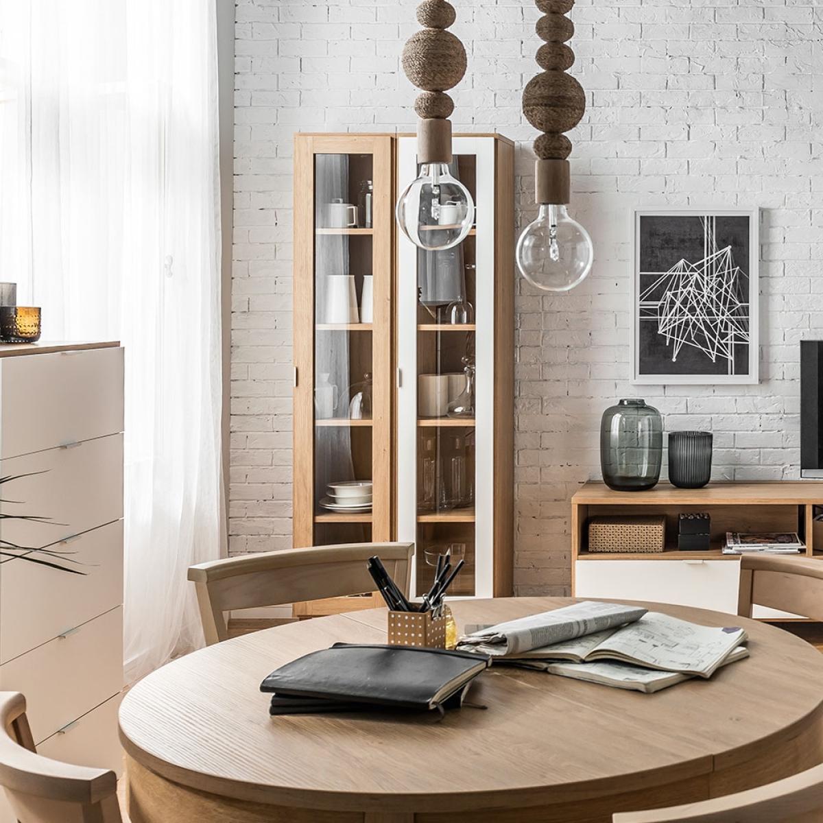 Put your goods on display with the Simple Narrow Glass Cabinet from Vox. The glass fronted door and LED lighting will make it the perfect place to show off your favourite bits and bobs. With the Simple range you can design it to suit you! Pick the colour of the body, the front, the handles and the style of the legs to fit your interior. Opt for all one colour or mix and match to make a piece unique to you. Pop it in the dining room for tableware, the living room with weird ornaments or the bedroom with family photos. Pure and simple.