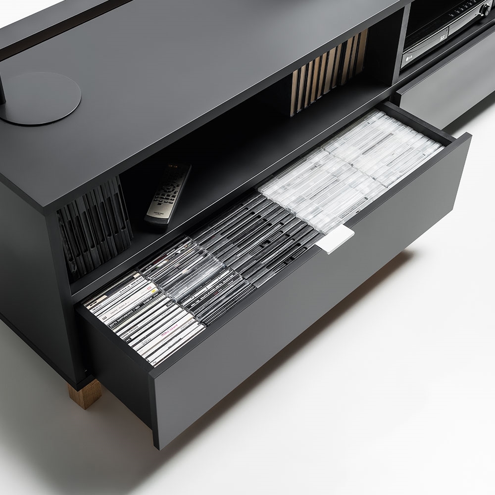 Tidy up your home entertainment with the Simple Large TV Unit from Vox, everything will have its place in this beauty. The two large drawers and two open compartments provide ample space for your electronics and DVD collection. Plus, with a strip to hide power cords say goodbye to those trailing cables. With the Simple range you can design it to suit you! Pick the colour of the body, the front, the handles and the style of the legs to fit your interior. Opt for all one colour or mix and match to make a piece unique to you. Whatever combination you choose, it will look gorgeous.