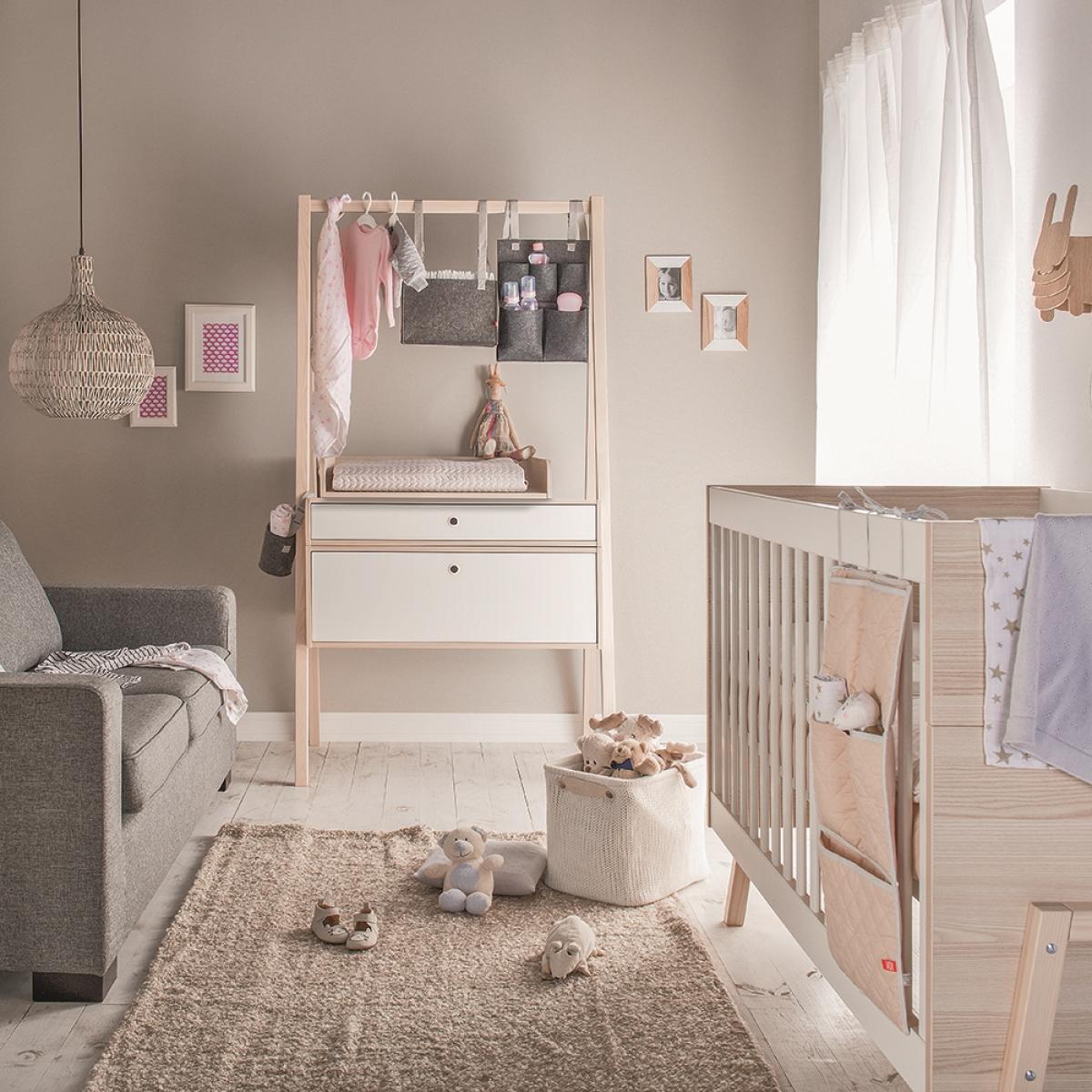 I love this Vox Spot changing unit because it combines practicality with a sleek, contemporary look. The white and acacia finish makes it versatile enough to suit a range of nursery styles, from Scandi minimalism to modern accents. It works particularly well in light, neutral interiors or spaces with natural textures, where it can add warmth and visual interest without overpowering the room. Practical styling tips include adding soft organisation baskets in muted tones for toiletries or toys, and keeping a cosy rug underneath for added comfort. The drawers offer convenient storage, helping to keep the space tidy and functional while maintaining a calm, uncluttered aesthetic.