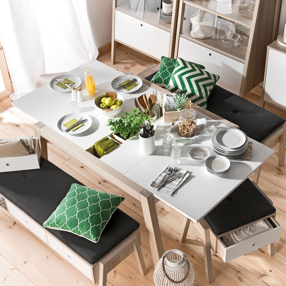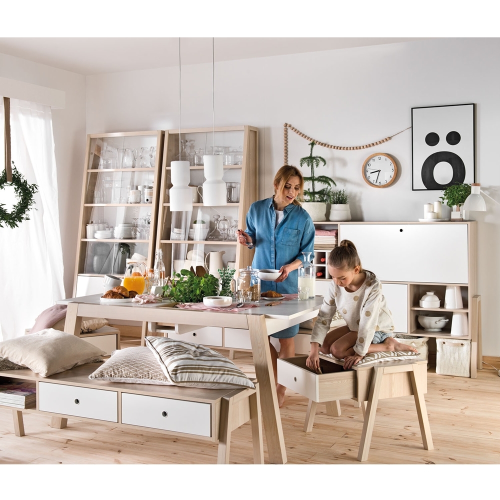 I love the Vox spot table for its sleek, minimalist design and versatile use of materials. Its extendable feature makes it ideal for both everyday family dinners and larger gatherings, while the combination of acacia and white adds a fresh, contemporary feel. This table works well in modern or Scandinavian-inspired interiors, where clean lines and natural textures are key. For styling, try pairing it with neutral-toned chairs for a streamlined look, or add colourful or patterned seating for a lively contrast. Keep accessories minimal - a simple vase or a set of sophisticated placemats can elevate the overall aesthetic without overwhelming the space.