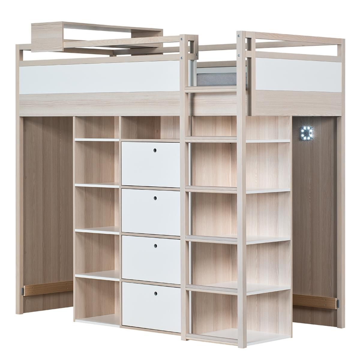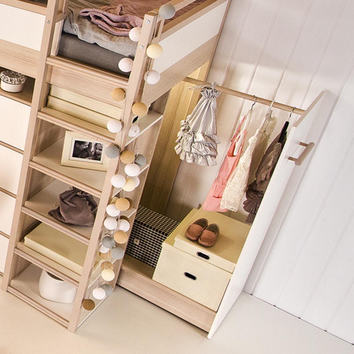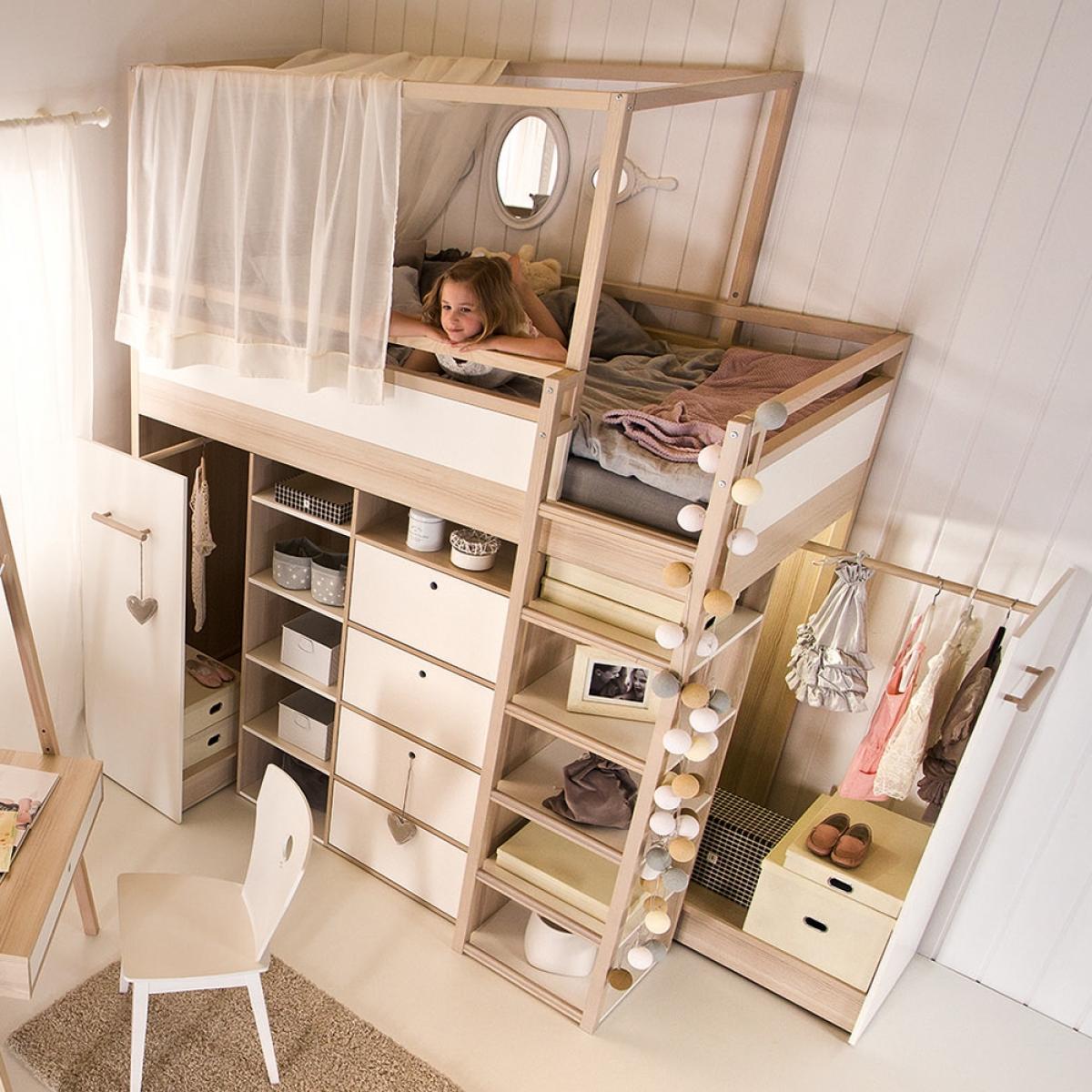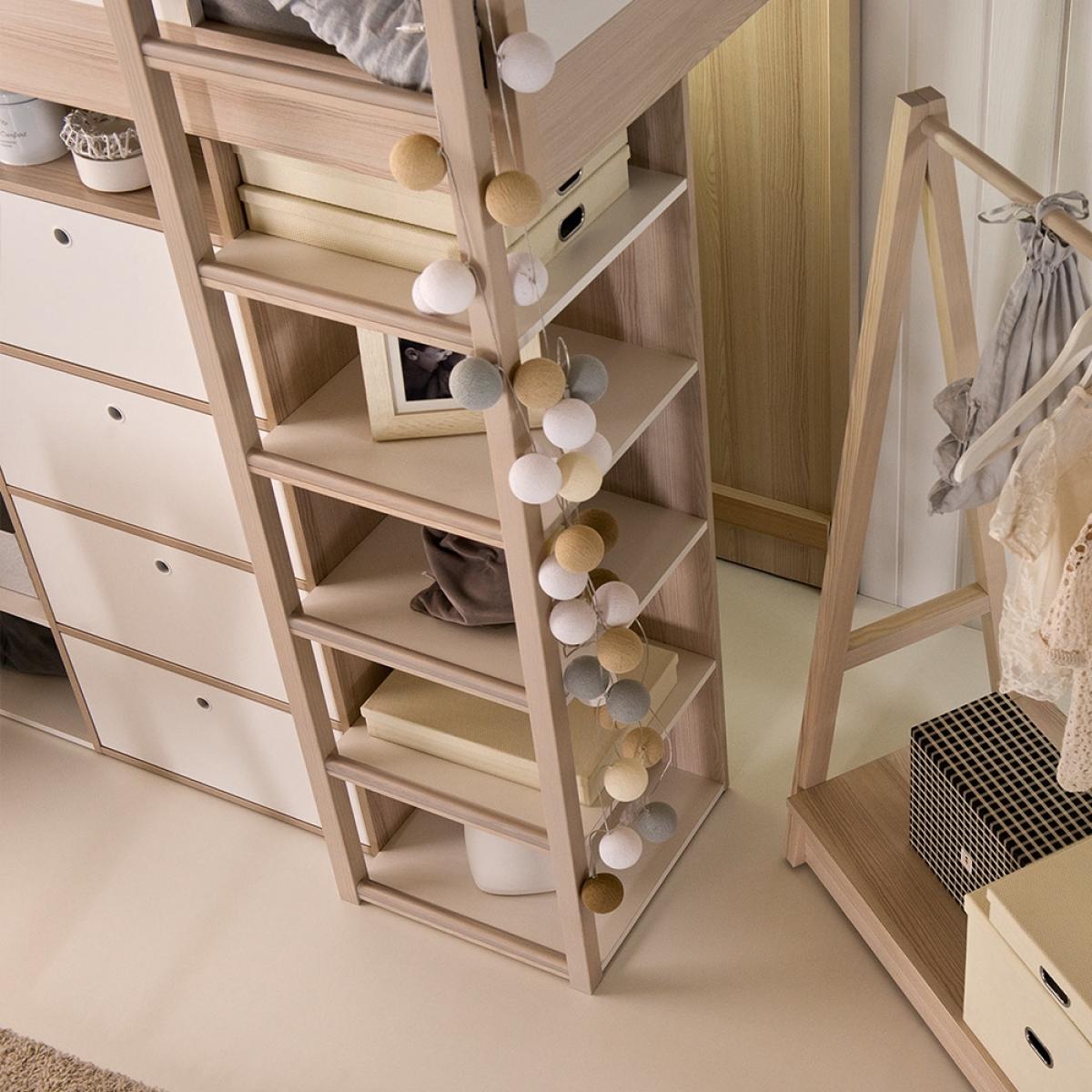 The Spot High Sleeper Storage Kids Bed by Vox truly is one-of-a-kind! The perfect space saving solution to your kiddies bedroom. This amazing bed comes complete with built-in shelves and drawers, as well as a walk-in closet behind with shelving - ideal for those mini-fashionistas or den-builders! On top of all that you can then choose to add the optional pull out clothes rail, to add even more storage space, a sliding table for the perfect cosy homework set up and a canopy to transform the bed into a 4 poster bed, add some fairy lights to create the sleep station of their dreams! Modular, dynamic and customisable, it's easy to see why this unique kids bed won the prestigious IF Design Award 2015 in the Home Product category. With a host of matching children's furniture items also on offer, Vox really have got it Spot-on with this multi-functional new range!.