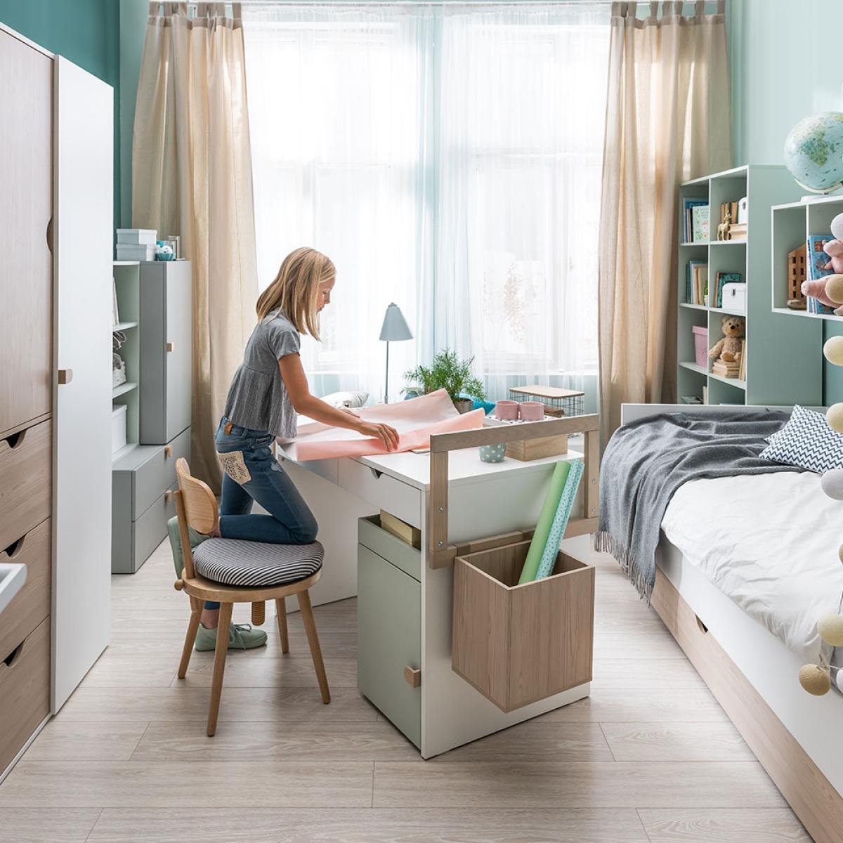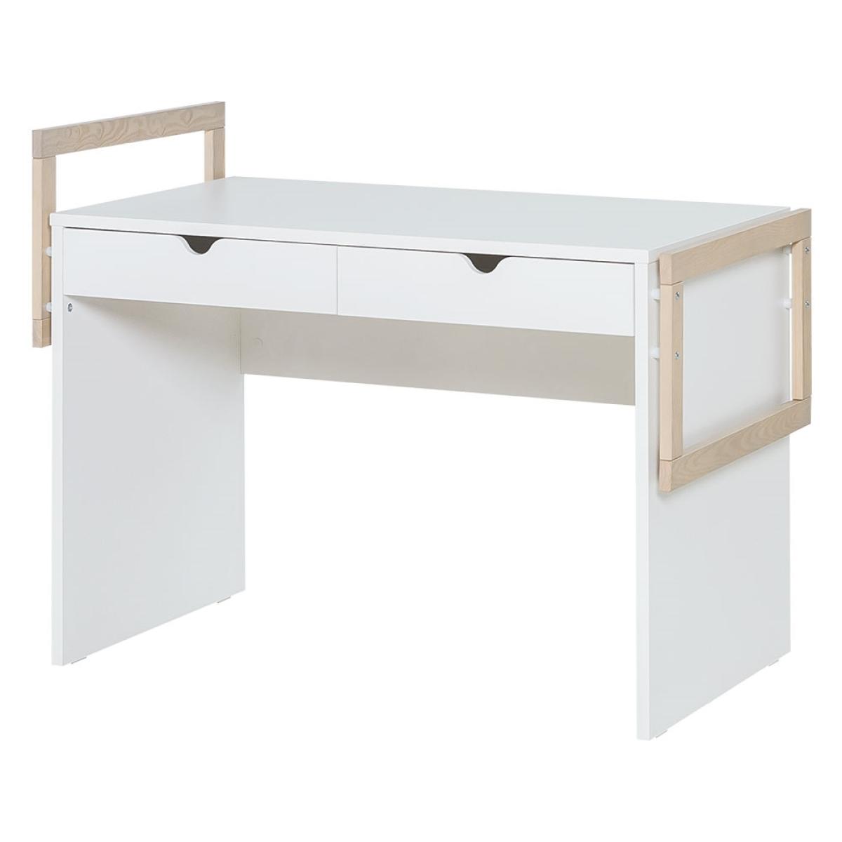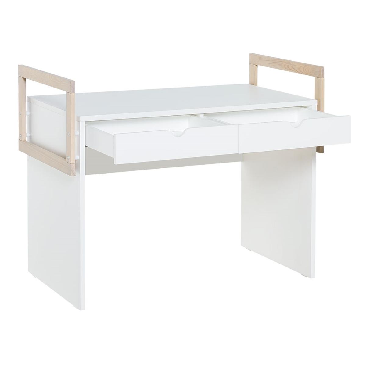 Stylish yet practical, the Stige Small Desk from Vox would make a truly wonderful addition to any home. In a simple white finish with pine details, this desk will suit any interior style and would blend seamlessly into your kiddies bedroom. The table top offers up plenty of space for drawing or a computer whilst the two drawers are ideal for storing all their bits and bobs. The great thing about this desk though is the two ladders at each end to add extra storage. A hanging box for toys or books or hanging organiser for pens and pencils. Whatever you choose to add it will look amazing.