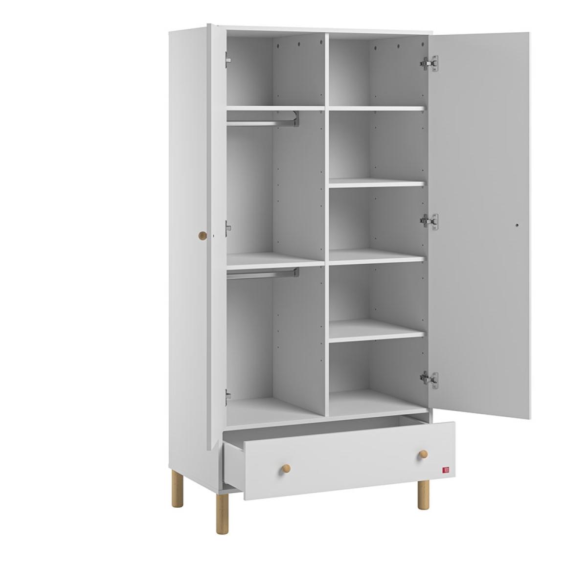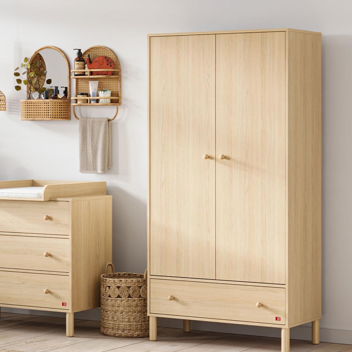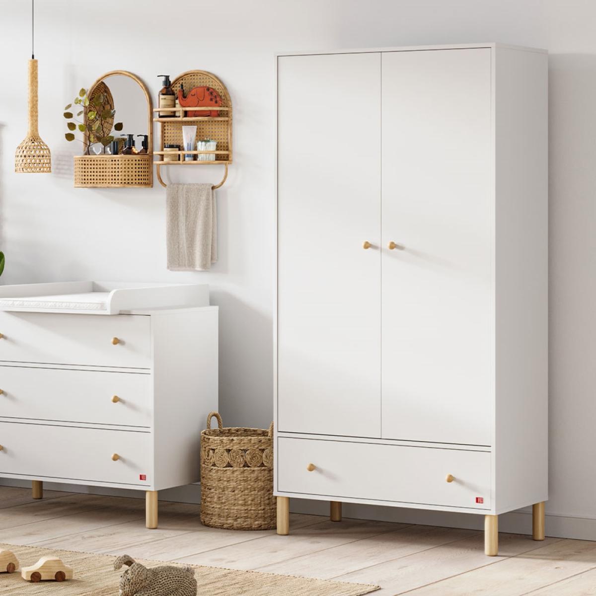 The Vox Tela Nursery Range is the embodiment of nature inspired minimalism. Available in two finishes: white or oak, Vox Tela will work beautifully with any existing colour scheme. The Vox Tela 2 Door Wardrobe provides plenty of practical storage for your nursery. The two-door wardrobe has one side with shelves for folded clothes and miscellaneous paraphernalia, and the other side very thoughtfully has two hanging rails – let’s face it, not many babies require full height hanging space for their outfits! There is also a useful drawer at the bottom for added storage. A matching Vox Tela Cot is available and why not complete your perfect nursery with the Vox Tela Dresser chest of drawers. You can never have too much storage in a nursery!.