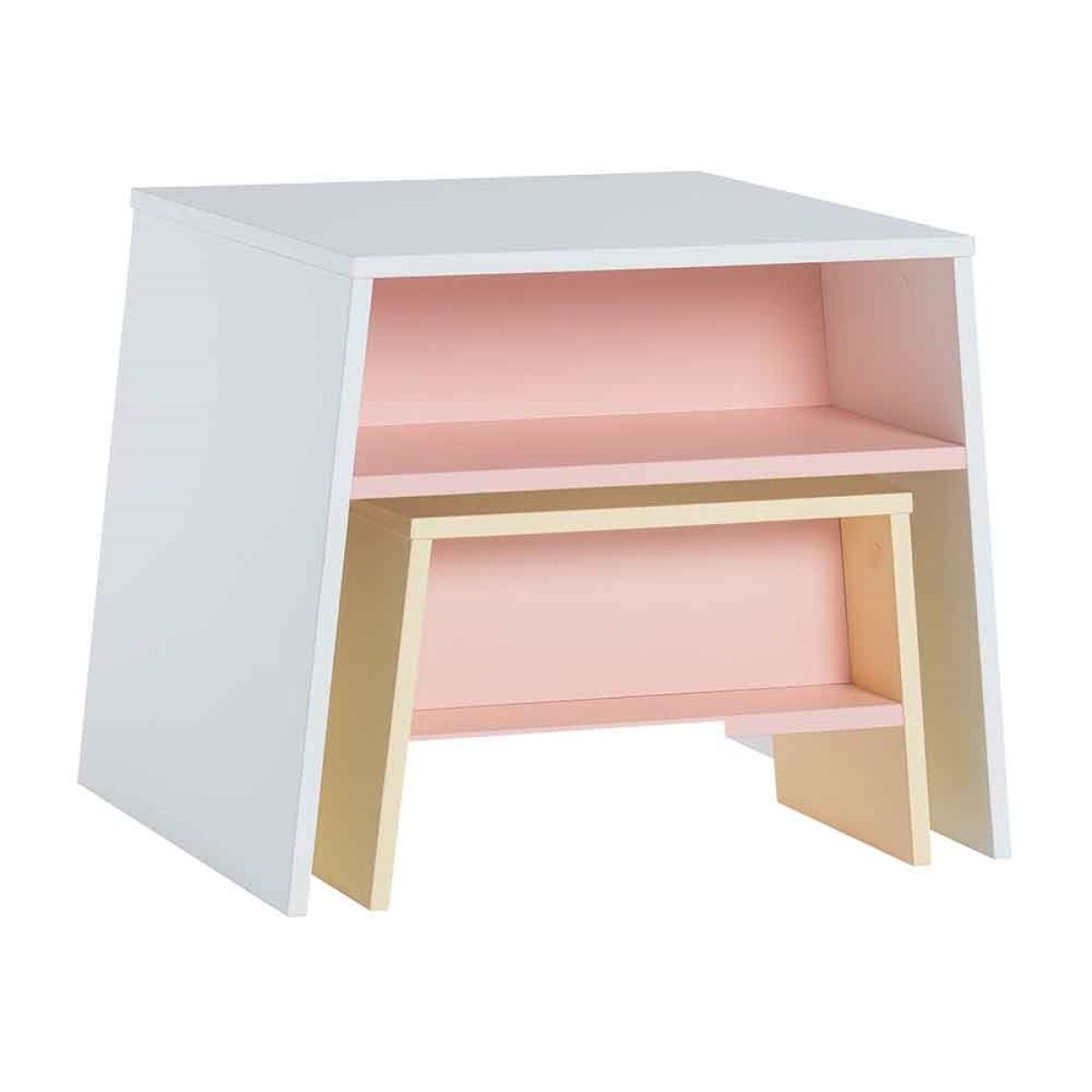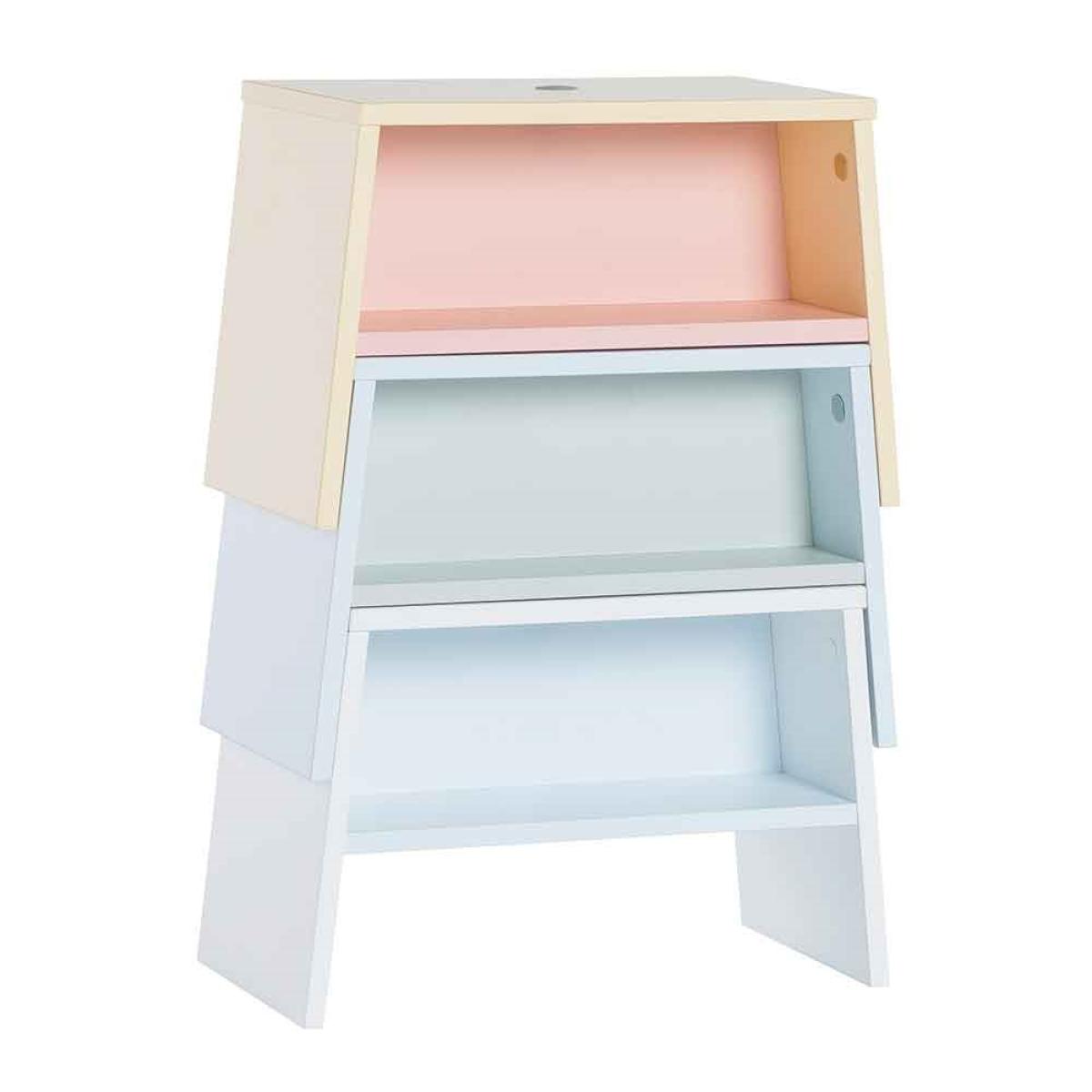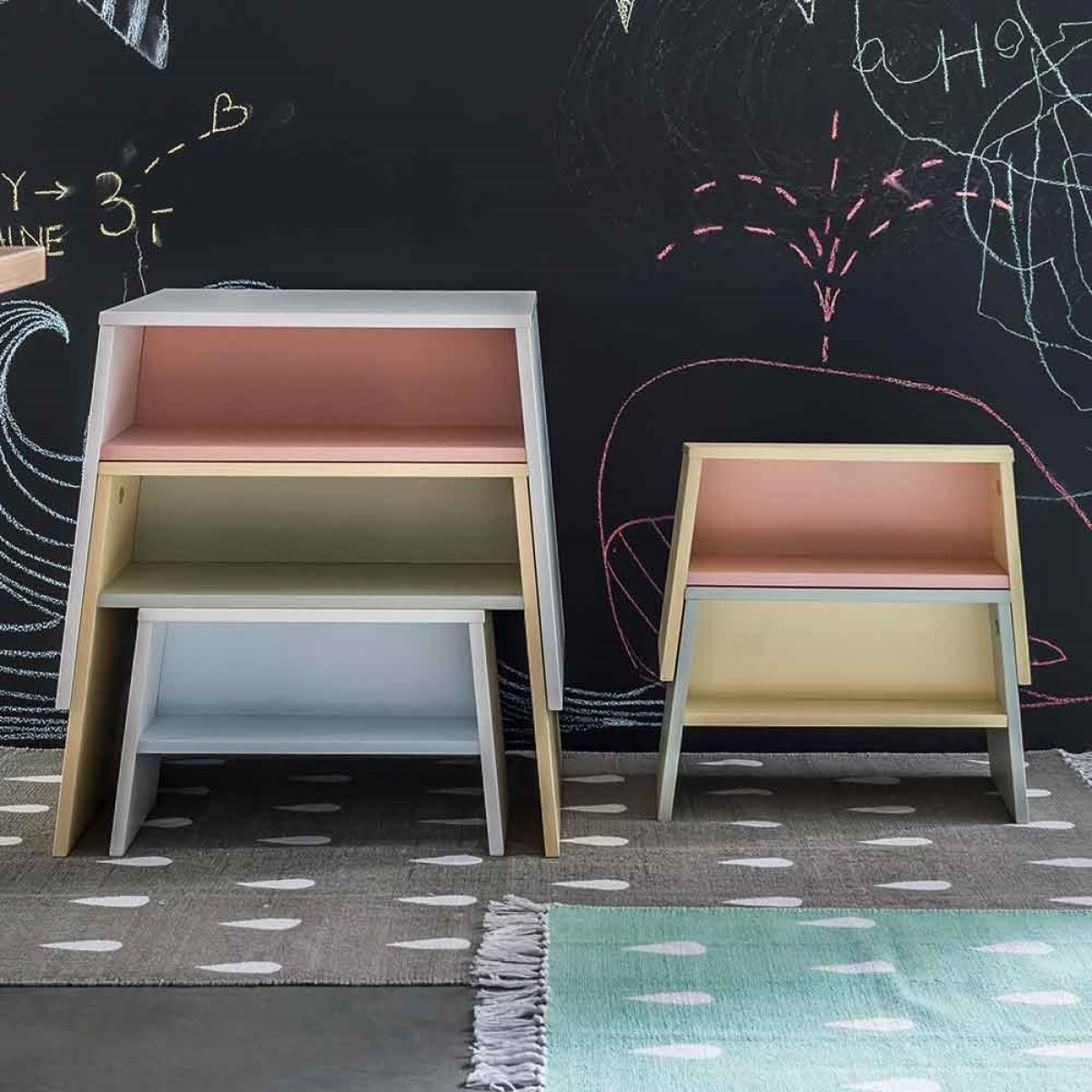 Designed to fit neatly beneath the matching Tuli desks, create the perfect spot for studying, reading and drawing with the Kids Stackable Stool from Vox. Featuring a shelf below the seat, display books, toys and knick knacks and with a small handle hole, your little one can easily move their chair unaided. Finished in yellow and pink, why not pair several of the other pastel coloured stools together and sit with your little one while doing homework. When they've finished using their set, simply stack to continue utilising the floor space. With a bookcase available separately, complete the look and add a little organisation to their playroom.