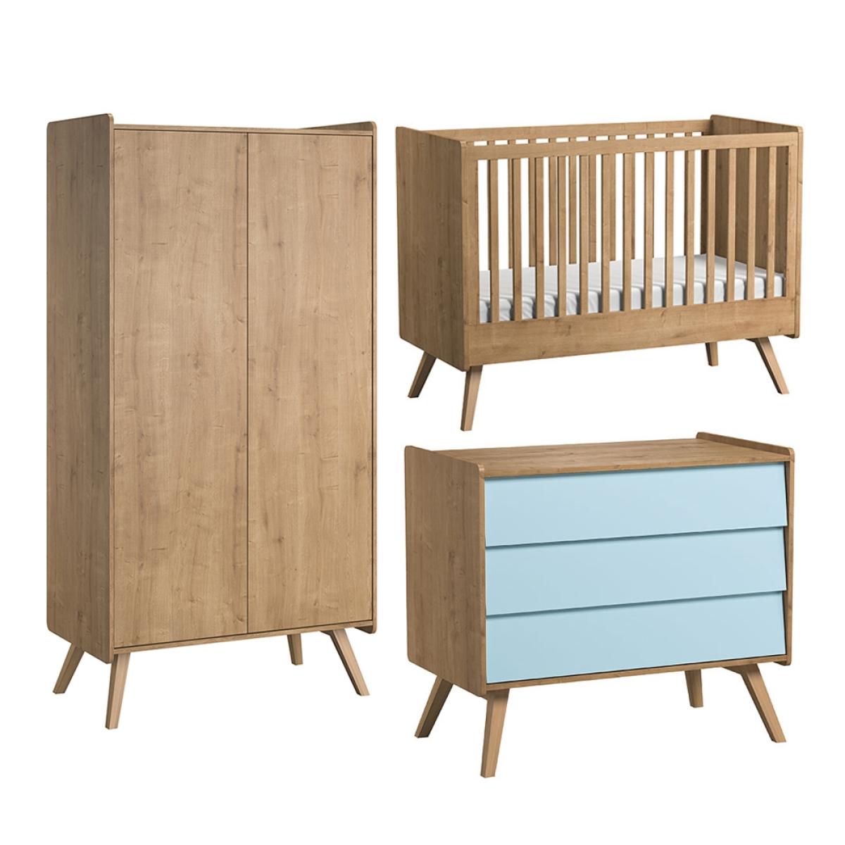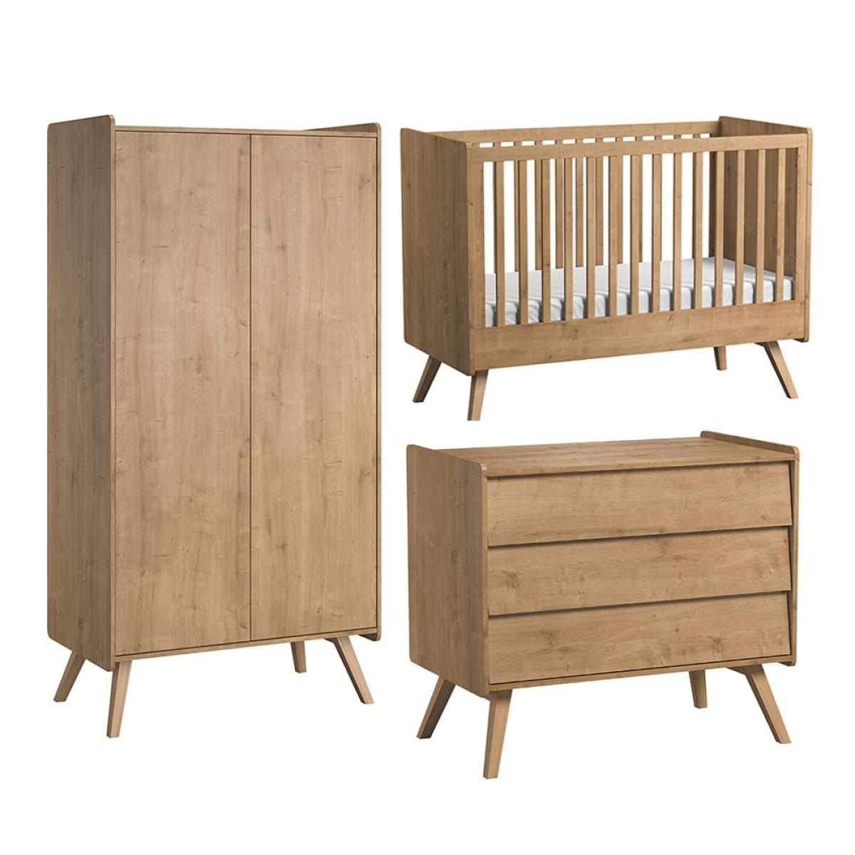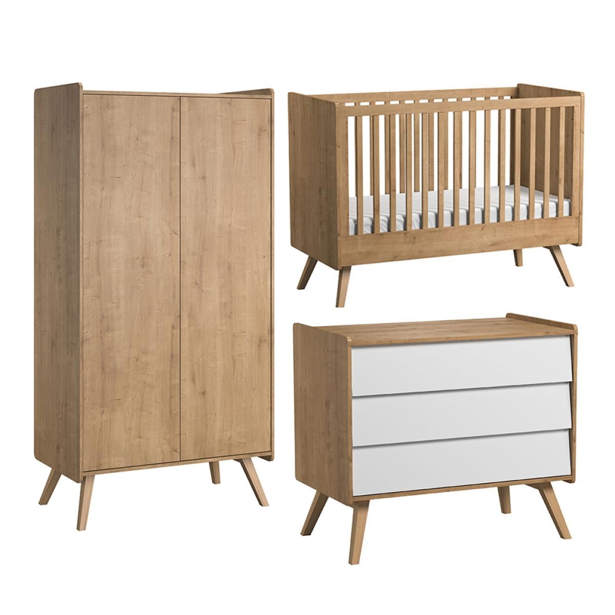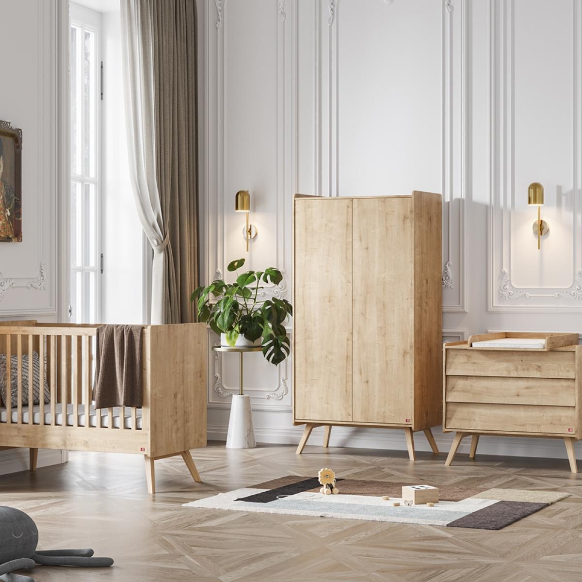 Give your newborn the nursery you always dreamed ofwith the Vox Vintage 3 Piece Cot Bed Nursery Furniture Set. Complete with a fully adjustable cot bed; adapt the frame to suit your babies development. Simply adjust the height of the mattress depending on their abilities and later when the cot has been outgrown, convert it into a toddler bed and continue using the set for years rather than months! You'll have plenty of storage space with the 2 door wardrobe with hanging rail and storage compartments and the matching 3 drawer dresser. Add the changing table top for a handy nappy changing station and keep those lotions and potions neatly stored in the drawers below. With 6 gorgeous colours to choose from, these natural and pastel shades are so stunning, you'll have a job picking your favourite!.