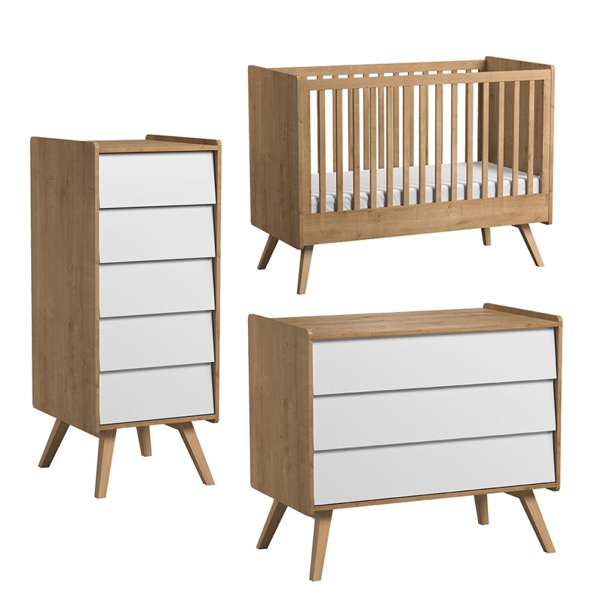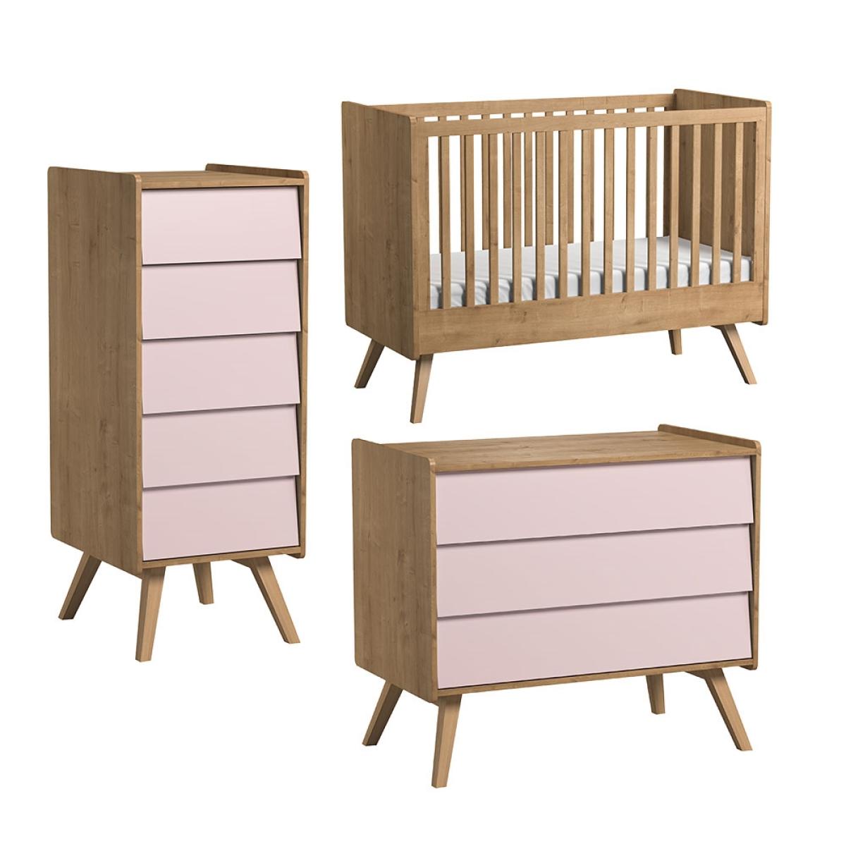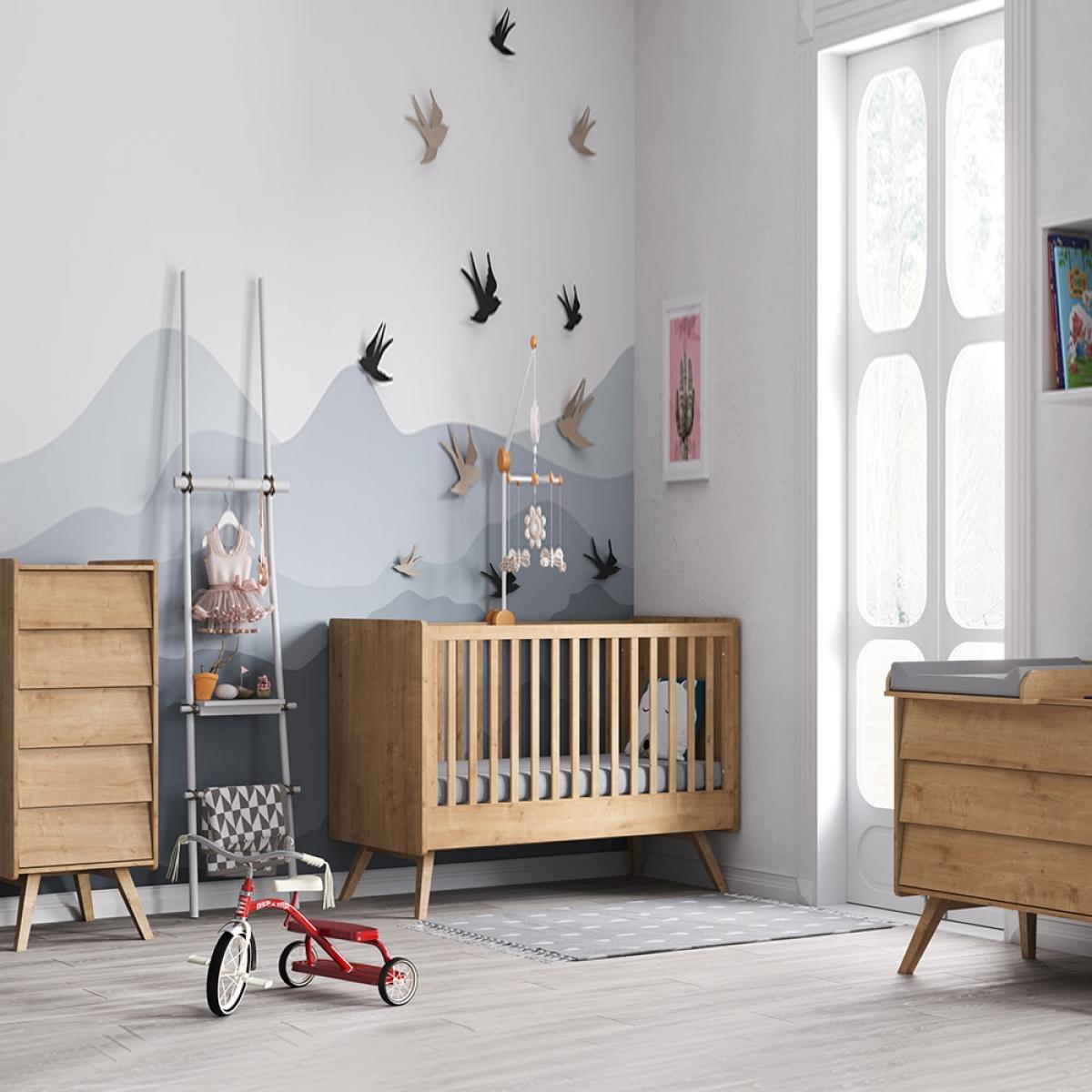 Welcome your newborn home with the gorgeous Vox Vintage 3 Piece Cot Bed Nursery Set, the perfect nursery furniture for them to grow with. This stunning set comes complete with a height adjustable cot bed, with three levels you can adapt it as they grow. Then when the times comes simply convert into a junior bed a continue using this wonderful bed. A tall chest of drawers, ideal in that tight spot, the 5 drawers offer up plenty of space for those toys, onesies and blankets. And if that wasn't enough storage, the chest of drawers can hold all of those other essentials. Plus with the option to add a changing table you can create the ultimate baby changing area, keeping all those nappies and wipes close at hand! Both Vox chest of drawers are available in 6 different gorgeous coloured fronts, you'll love picking the one for you and your little one.