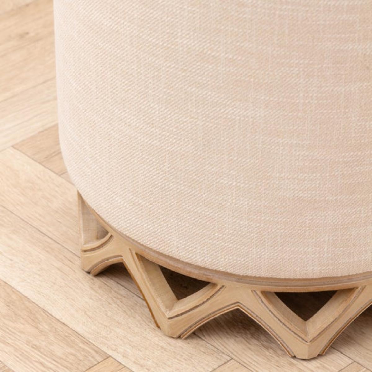* Timeless style * Soft fabric * Wooden base Classic comfort meets country charm in this elegant design. Upholstered in a soft woven fabric, it offers a cosy spot to rest your feet or take a seat. The oak-stained wooden legs add a warm, traditional touch that blends beautifully with rustic or heritage-inspired interiors.