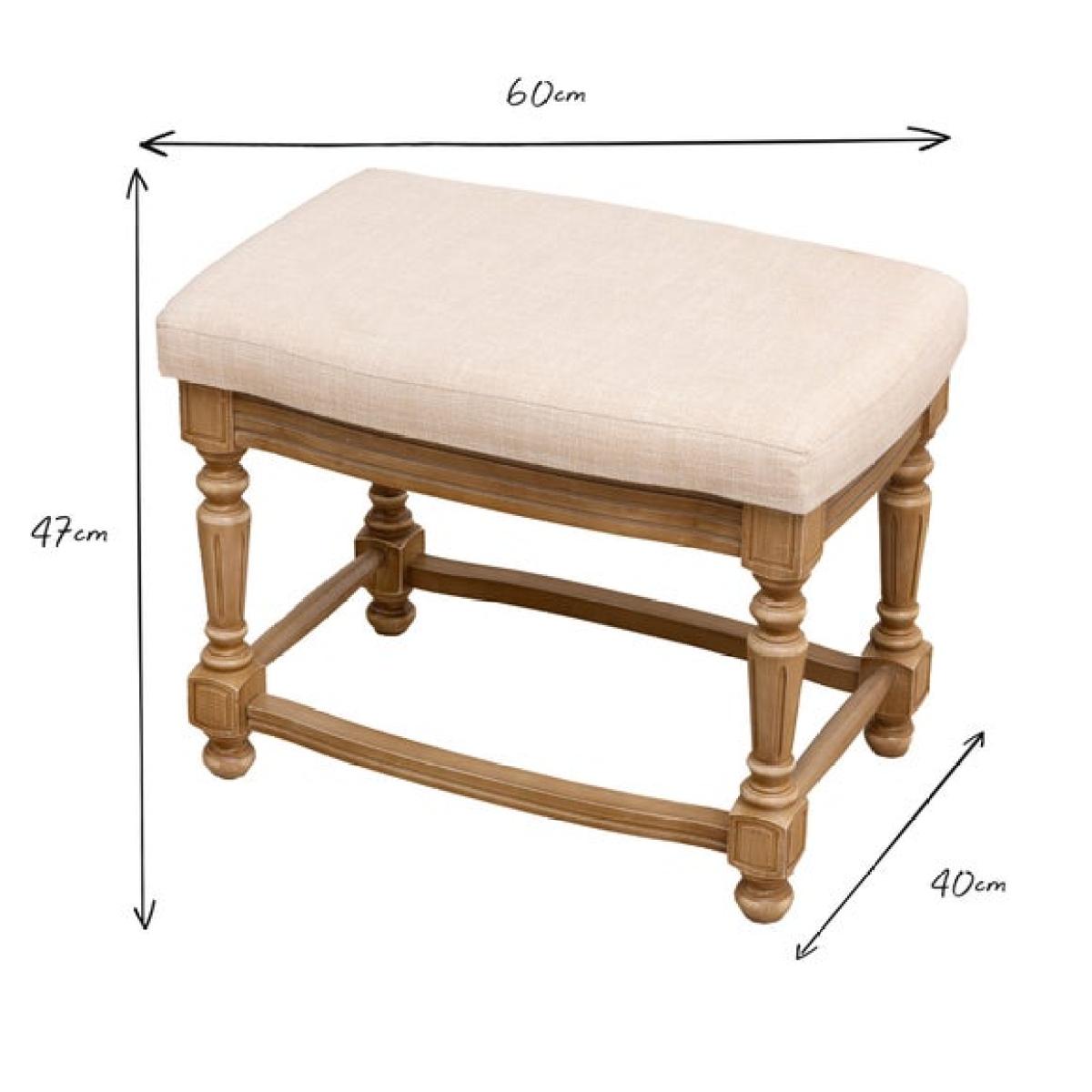* Timeless style footstool * Soft upholstery * Oak stained carved legs Charming and compact, this rectangular footstool is perfect for adding a touch of country elegance to your home. The woven fabric upholstery brings a cosy, tactile feel, while the carved wooden legs, finished in a warm oak stain, lend a traditional touch. Its petite proportions make it ideal for smaller spaces, such as under a dressing table or beside a favourite chair, without compromising on comfort or style.