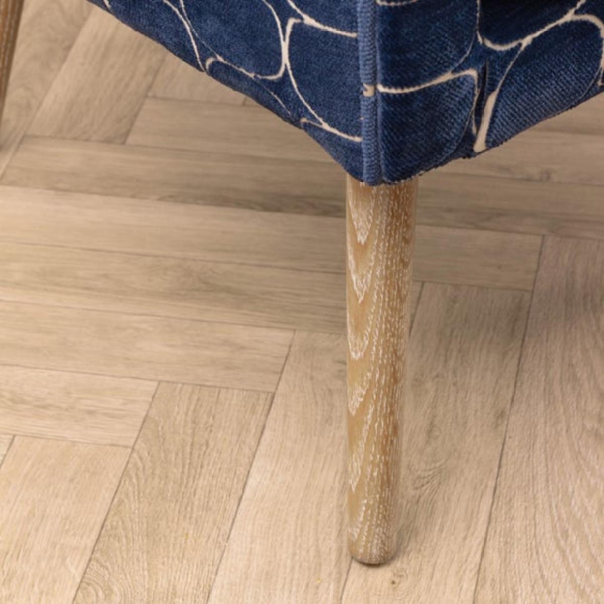 I love this one for its bold pattern and vintage-inspired silhouette. It works particularly well in eclectic, retro, or mid-century modern interiors, adding a splash of colour and personality without overpowering the space. Its compact size makes it practical for small rooms or as a statement piece in a larger living area. Styling tips include pairing it with neutral tones or softer textures to let the armchair stand out, or mixing it with other patterned accessories for a layered, stylish look. The wooden legs give it a contemporary touch, making it versatile enough to blend into various interior styles.