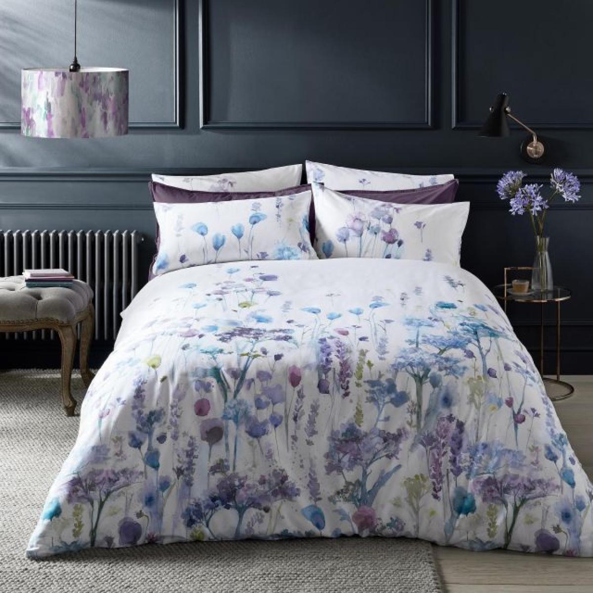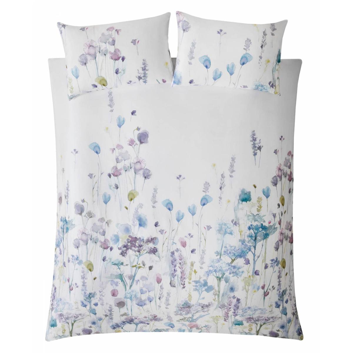 Aspiring to be colourful and to bring a fresh airy feel to the home we express our vision in soft watercolour painting and drawing, bought to life in our own studio by our talented team of artists. A beautiful collection of meadow flowers with splashes of watercolour in soft blues, pale olives and warm amethyst tones. Printed onto a luxurious 220tc 100% cotton sateen, what could be more relaxing for a peaceful nights sleep. Composition 100% Cotton sateen 220 thread count percale Each set includes 2 pillowcases Machine washable