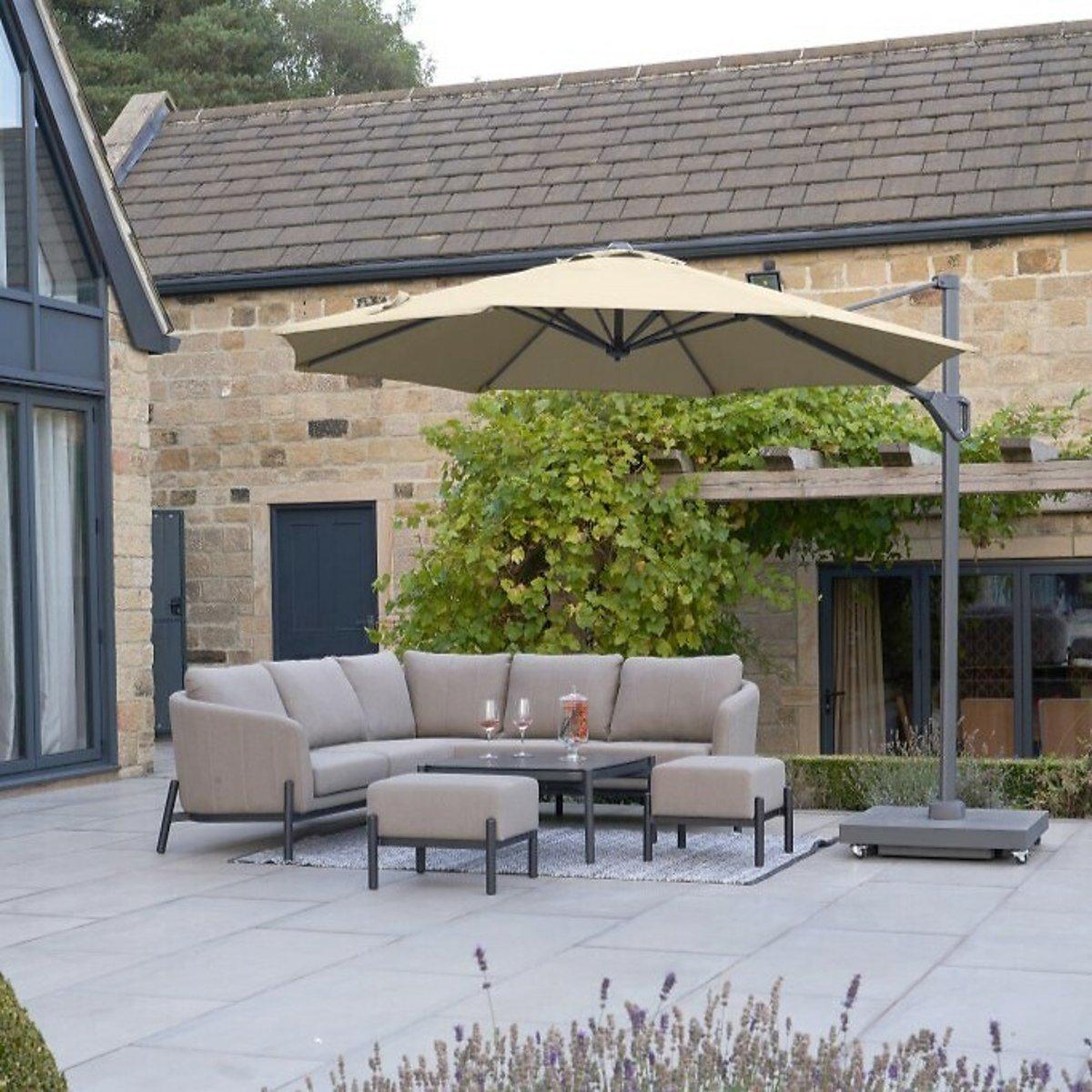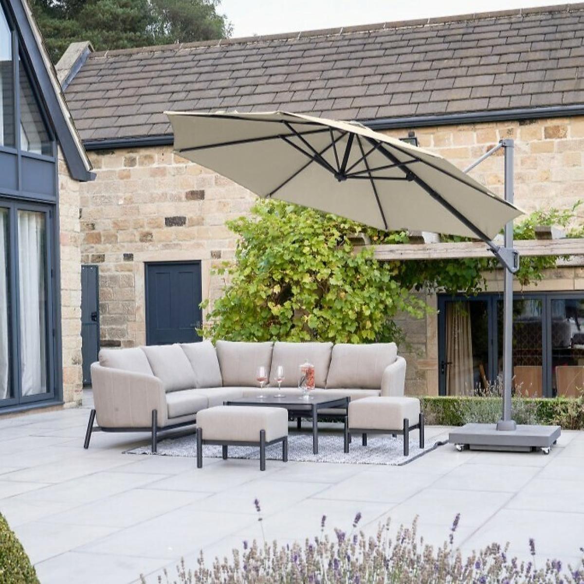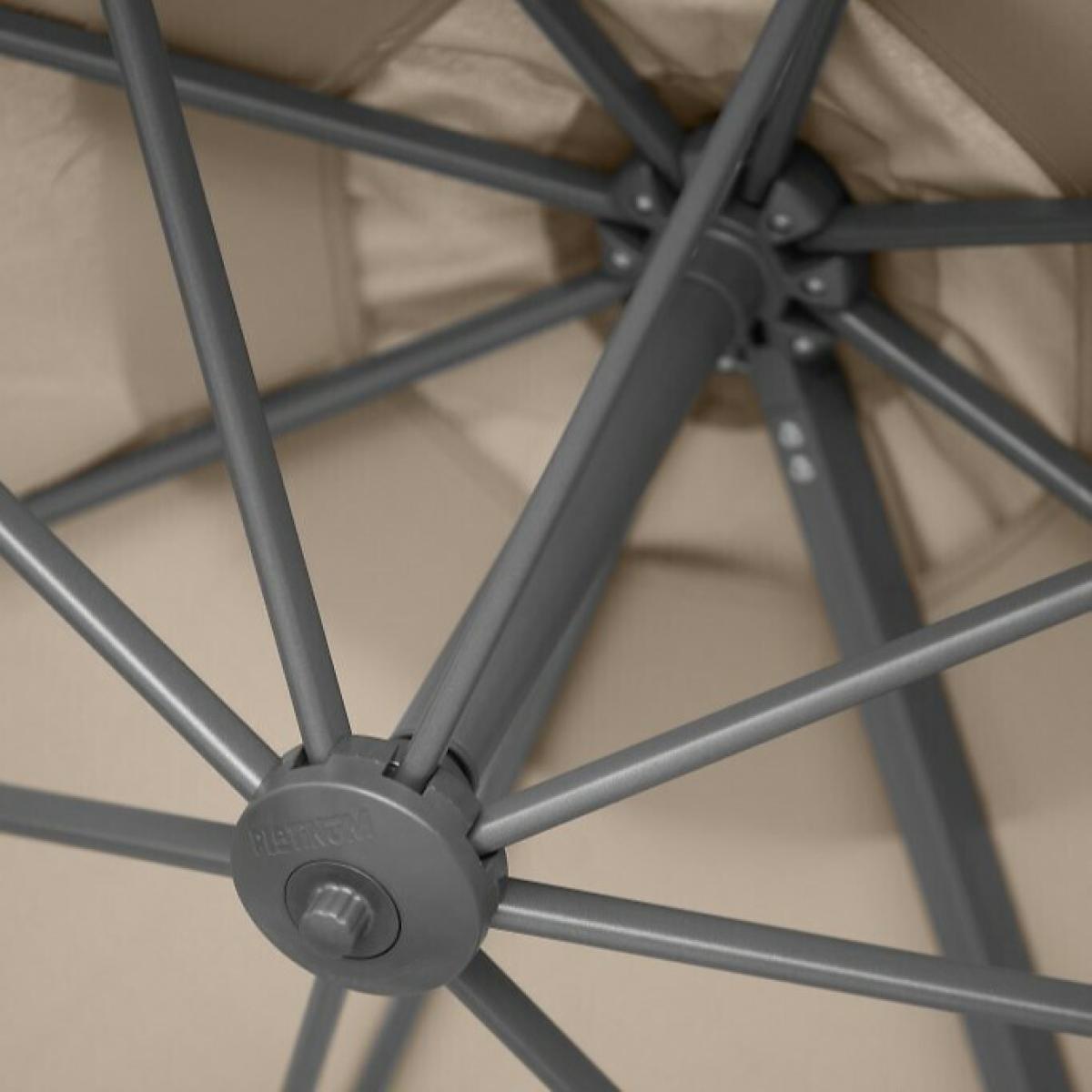 The Platinum Voyager T1 Round Parasol is one of our elite garden parasols offering a robust design, and fantastic sun protection for your outdoor dining or seating set. It has a 360 degrees manoeuvrable silhouette, a single tilt mechanism, meaning it can be tilted forwards and backwards, into any desired position to optimise shade, and protection throughout the whole day. A sturdy aluminium cast mechanism to open and close the shade, guarantees long durability. Made from weather resistant, Class 2, 220g/m2 Polyester, which offers a colour fastness level of 80-160 days, and an Ultraviolet Protection Factor (UPF) of 35+.Product Composition - Aluminium 60%, Polyester 40%Product Dimensions - 300 cm x 300 cm x 249 cm, Weight 19 kg. Package Dimensions - 250 cm x 35 cm x 14 cm, Weight 20 kg. This product will be dispatched by one of our trusted suppliers. You’ll be contacted by their selected courier about your delivery.