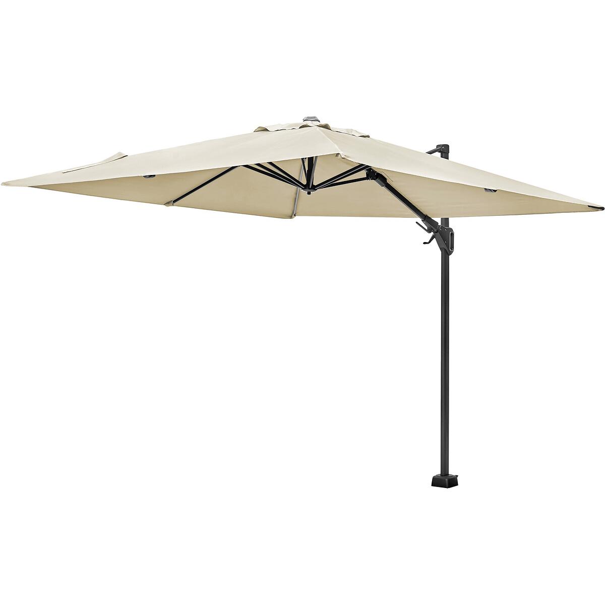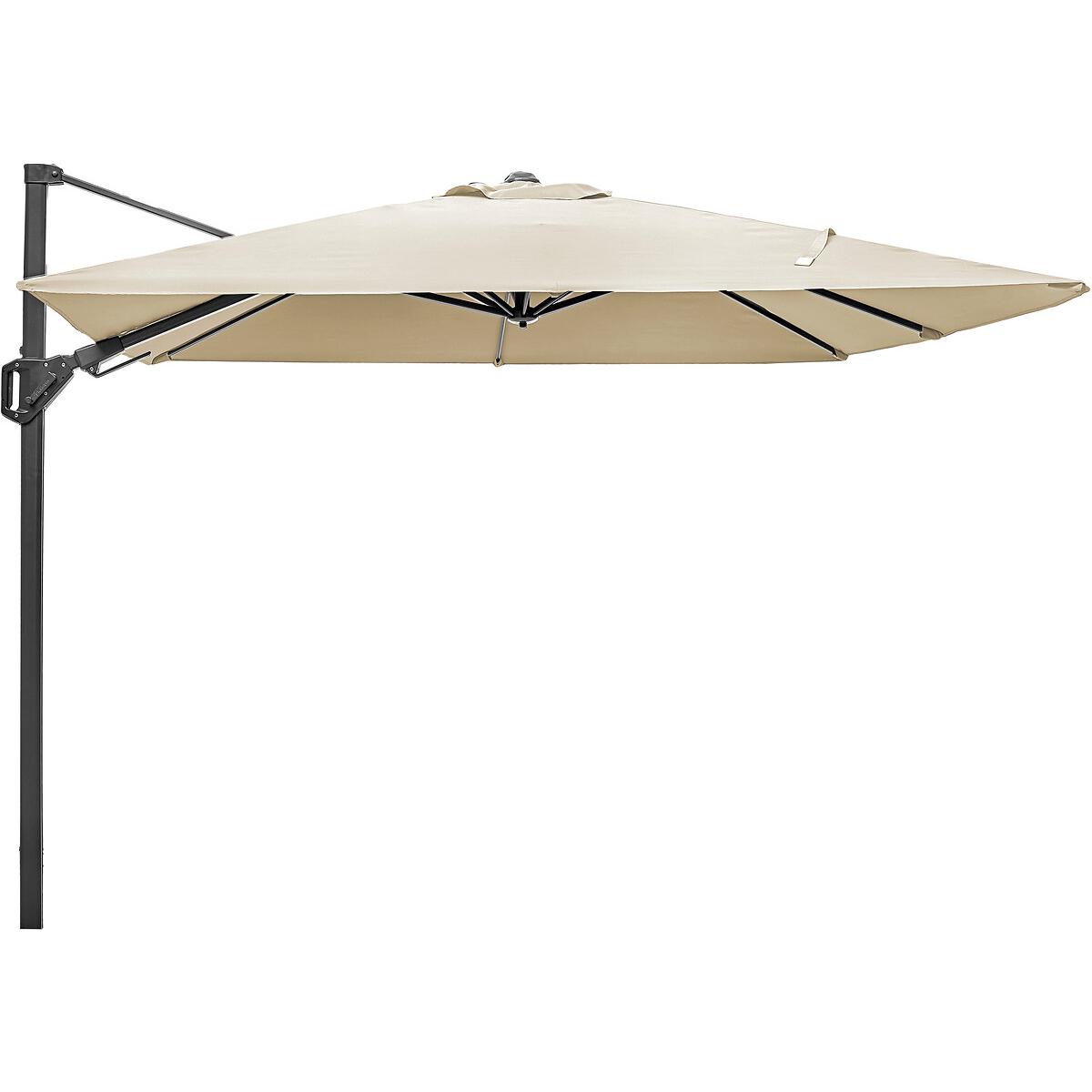 The Platinum Voyager T2 Square Parasol is one of our elite garden parasols, and fantastic sun protection for your outdoor dining or seating set. It has a 360 degrees manoeuvrable silhouette, a double tilt mechanism, meaning it can be tilted forwards, backwards and sideways, into any desired position to optimise shade, and protection throughout the whole day. A sturdy aluminium cast mechanism to open and close the shade, guarantees long durability. Made from weather resistant, Class 2 240g/m2 Polyester, which offers a colour fastness level of 80-160 days and a Ultraviolet Protection Factor (UPF) of 50+.Product Composition - Aluminium 60%, Polyester 40%Product Dimensions - 270 cm x 270 cm x 248 cm, Weight 22 kg. Package Dimensions - 249 cm x 35 cm x 14 cm, Weight 23 kg. This product will be dispatched by one of our trusted suppliers. You’ll be contacted by their selected courier about your delivery.