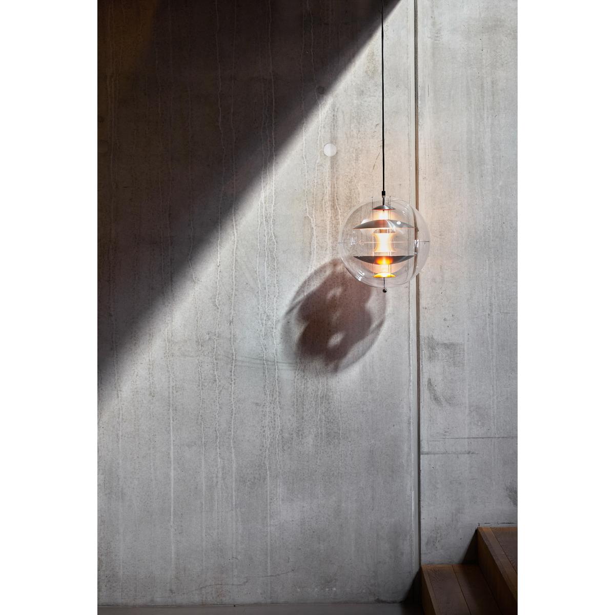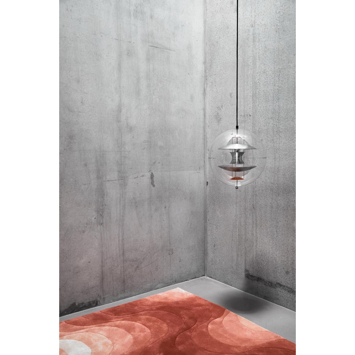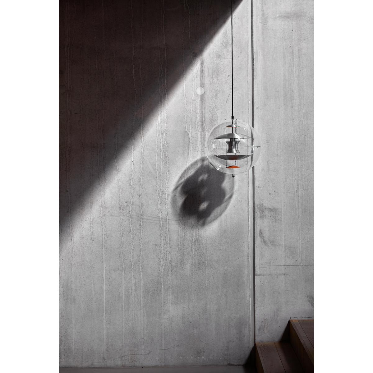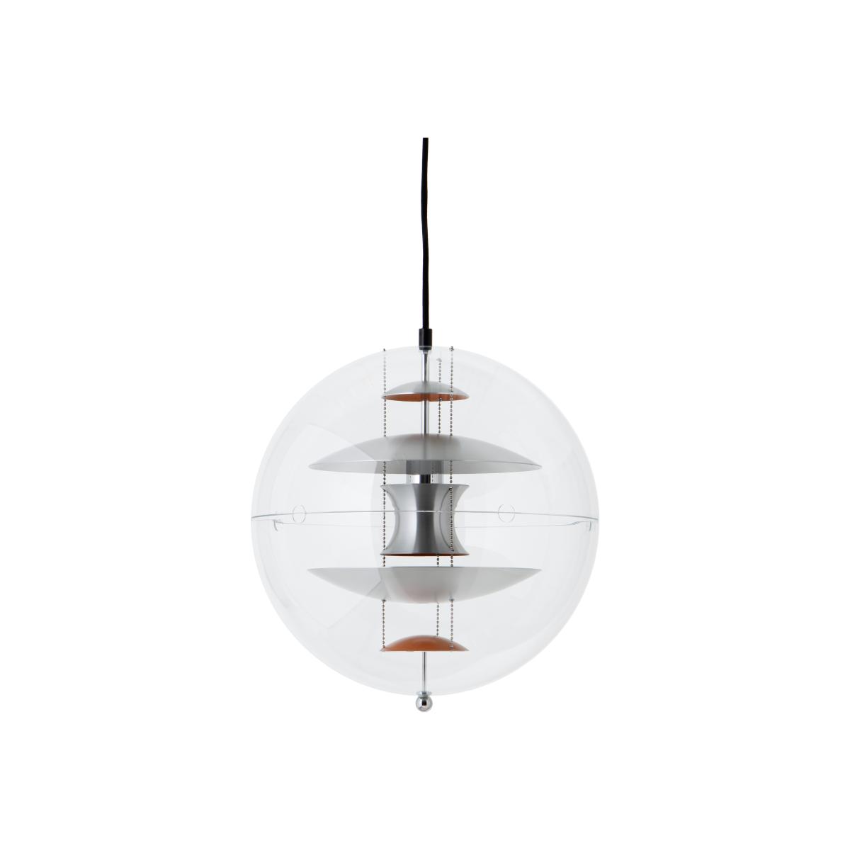 VP Globe Brushed Alu ceiling lamp from Verpan is an innovative lamp with an amazing design created by Verner Panton. The globe-shaped ceiling lamp is made of transparent acrylic with reflectors made of aluminium, which in combination create a unique and characteristic look. The ceiling lamp looks lovely over the coffee table or dinner table.