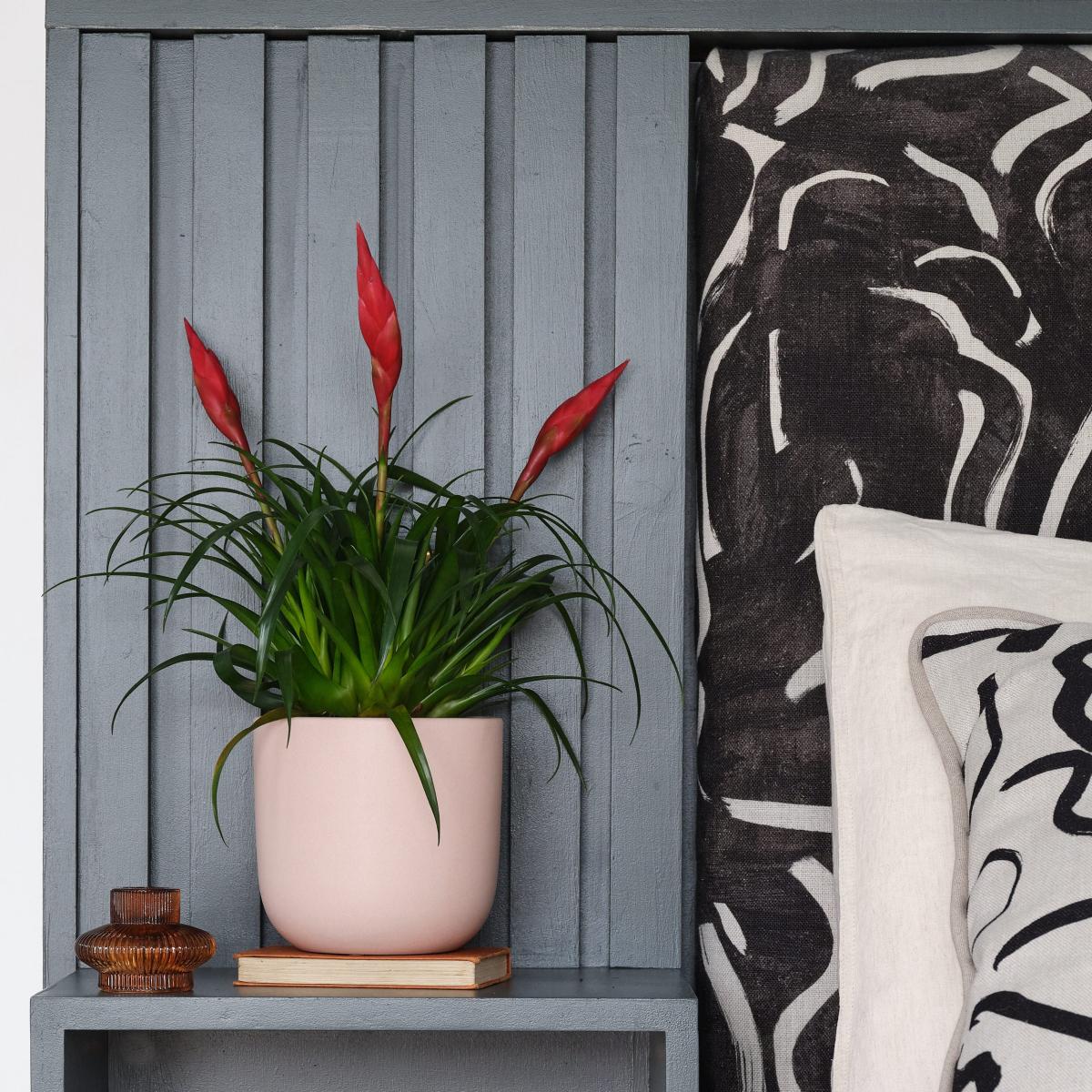 Elegant by name and elegant by nature! This striking, flowering plant is known for its hot pink blooms which you can expect to enjoy for between three to six months of the year. A tropical plant through and through, native to south and central America, the Vriesea Astrid appreciates humidity and regular misting to keep it happy and thriving. Otherwise, it’s incredibly easy to care for making it a beautiful plant for any first time plant parent. Paired with a handmade, perfectly-fitting coloured earthenware pot. How to keep me happy: Please note: As this is a living product your plant may vary to the one photographed. Plant height measurement includes the pot. Width measurement is for the width of the pot only; width of the plant may vary. Please note, unfortunately we cannot deliver this item to Northern Ireland or the Channel Islands.