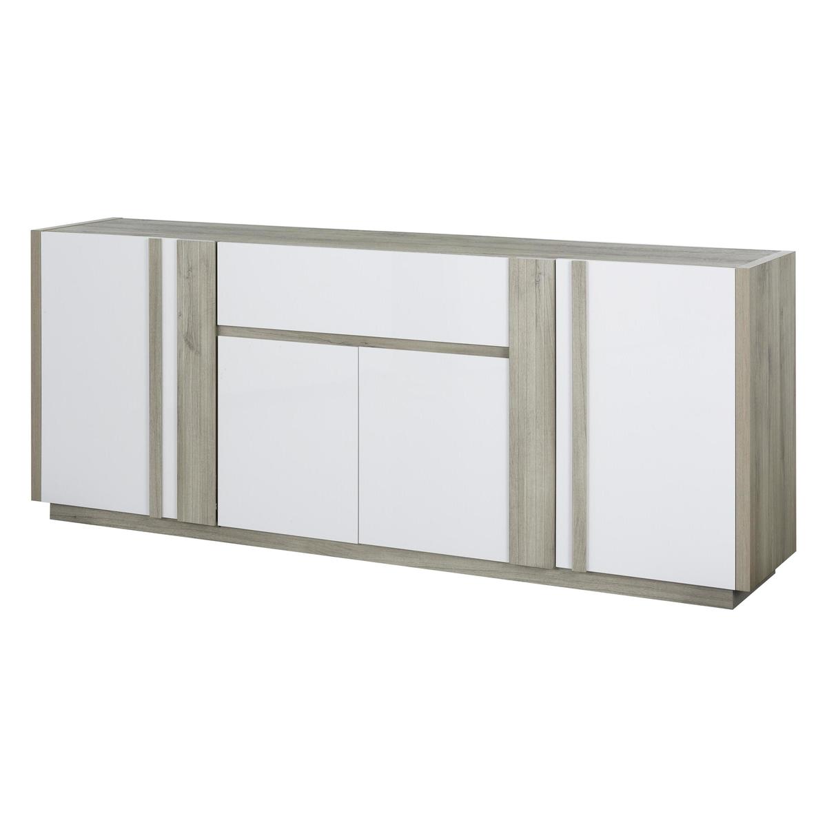 Fantastic-value contemporary storage solution. On trend high-gloss and oak-effect finish. Only at Furniture Village. If you're a fan of the modern living look, that very popular clean, simple and minimal style, yet still need somewhere to put all those bits and pieces – and who doesn’t? – we’d like to introduce you to the Vue 4 door sideboard. Remarkable for both its contemporary style and its fabulous storage, this roomy yet compact unit is perfect for both living rooms and dining rooms. And with its oak-effect frame and white high-gloss lacquered doors, the look perfectly channels an urban contemporary aesthetic. The cupboards each have a shelf, and there's a wide drawer that’s perfect for smaller items. Doors and drawers have soft-close mechanisms, and doors have stylish linear handles. The great-value Vue 4 door sideboard is part of the Vue collection of living room and dining room storage pieces. Made in France, the range includes a wide choice of display units as well as TV unit, a coffee table and a multi-purpose entertainment unit. This piece is also available with LED lighting, please call 0800 804 8879 for more information. Only at Furniture Village.