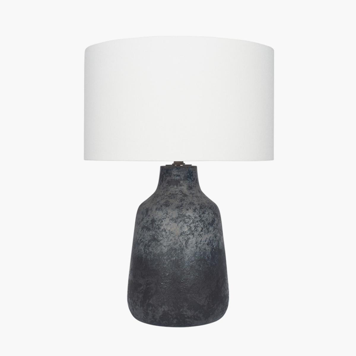 A bottle-shaped, concrete effect stoneware table lamp with a super contemporary feel whilst retaining an artisan look. This table lamp comes with a natural-coloured linen shade so it will fit any room décor.