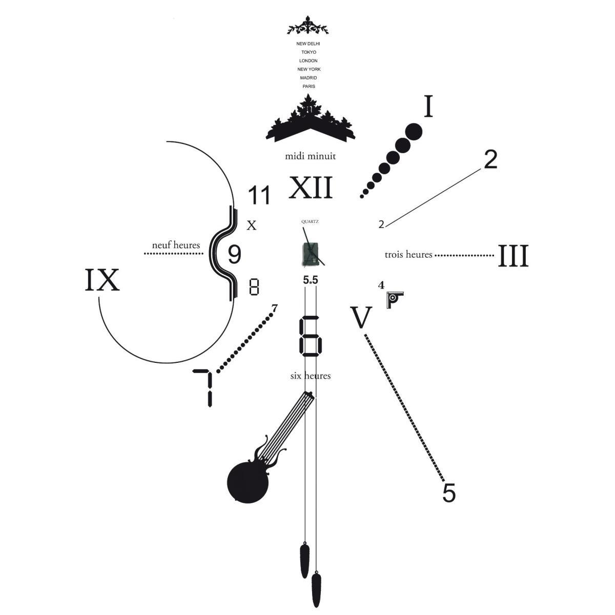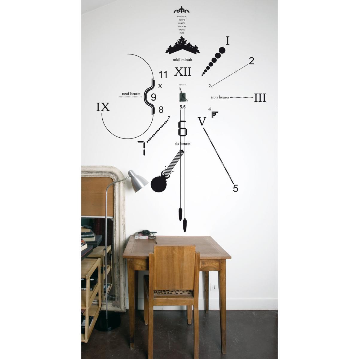 Vynil, an alternative to wallpaper As a true alternative to wallpaper, the Vynil collection, named from the material from which it is made of, gives the hand to the final user who, incited to turn his/her interior into a space of self-expression, becomes the designer of his/her own decoration. Vynil turns the « wall space » into a playground where composition and story telling are open for innovation. Free yourself from the constraints brought upon you by wall paper and let the Vynil collection, beyond the sheer practical benefits that it brings - you no longer need glue nor a specific table - help you rethink the importance and role of the ornamental motive for your home. Easy to install, self-adhesive, just pick your model out of the collection, compose the visual representation by yourself, and dress up a wall, door, piece of furniture. In your own home. Besides, a collection of original Vynils for Autumn/Winter 2006, Domestic tackles new spaces in the house and invents new uses for the Vynil collection. Create and install at home a gigantic clock, a vase that snakes across the walls or a self-adhesive parrot on which to hang your clothes. Pointed out in 2003 for the Réanim project, a medicine for objects, 5. 5 designers started many relationships with big companies (Arc, Ozé, Bernardaud, Galeries Lafayette. ). They are determined to propose consuming alternatives while keeping a functional and funny conception. Vynil clock is delivered with a mecanic clock.