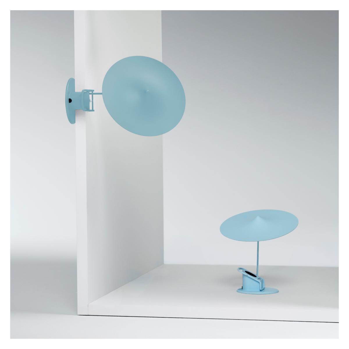 Designed by Inga Sempé for Wästberg, the w153 Île lamp in a sky blue hue pays homage to the multifunctional diversity of clamp lamps. Seen by the designer as an underappreciated, underexplored form, the clamp lamp is transformed to create the w153 Île, which uses highly energy-efficient multi-chip LED technology to ensure bright emanations, while its broad, movable shade rests on a magnetic ball joint, allowing smooth adjustment of light. The w153 Île lamp can be wall-mounted, clamped to tables and surfaces and has a flat base, allowing it to alternatively stand anywhere you wish. This versatile design is perfect for lighting corners, or grouped together to enhance a contemporary space. Please note: This lamp requires one integrated LED bulb maximum 7W (included).