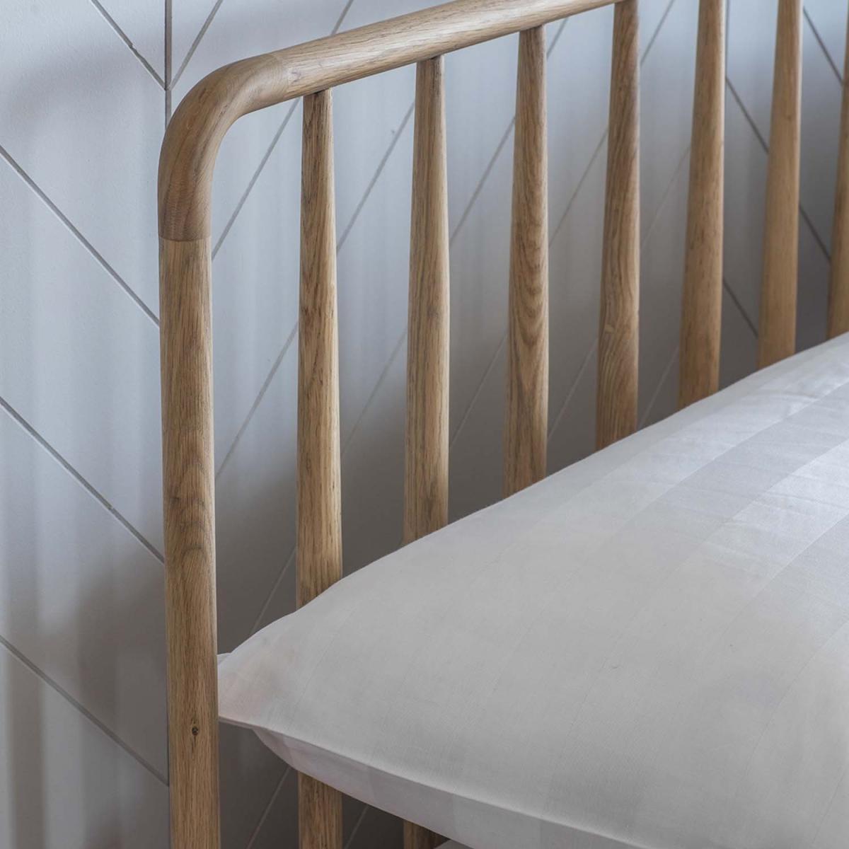 The Waddon Bedframe offers the best of practical simplicity. Made from a combination of the finest solid oak and veneers, this double bed creates a contemporary aesthetic colour palette that is the essence of Nordic style. The spindled headboard adds an additional element of style and interest to an extremely neutral design.