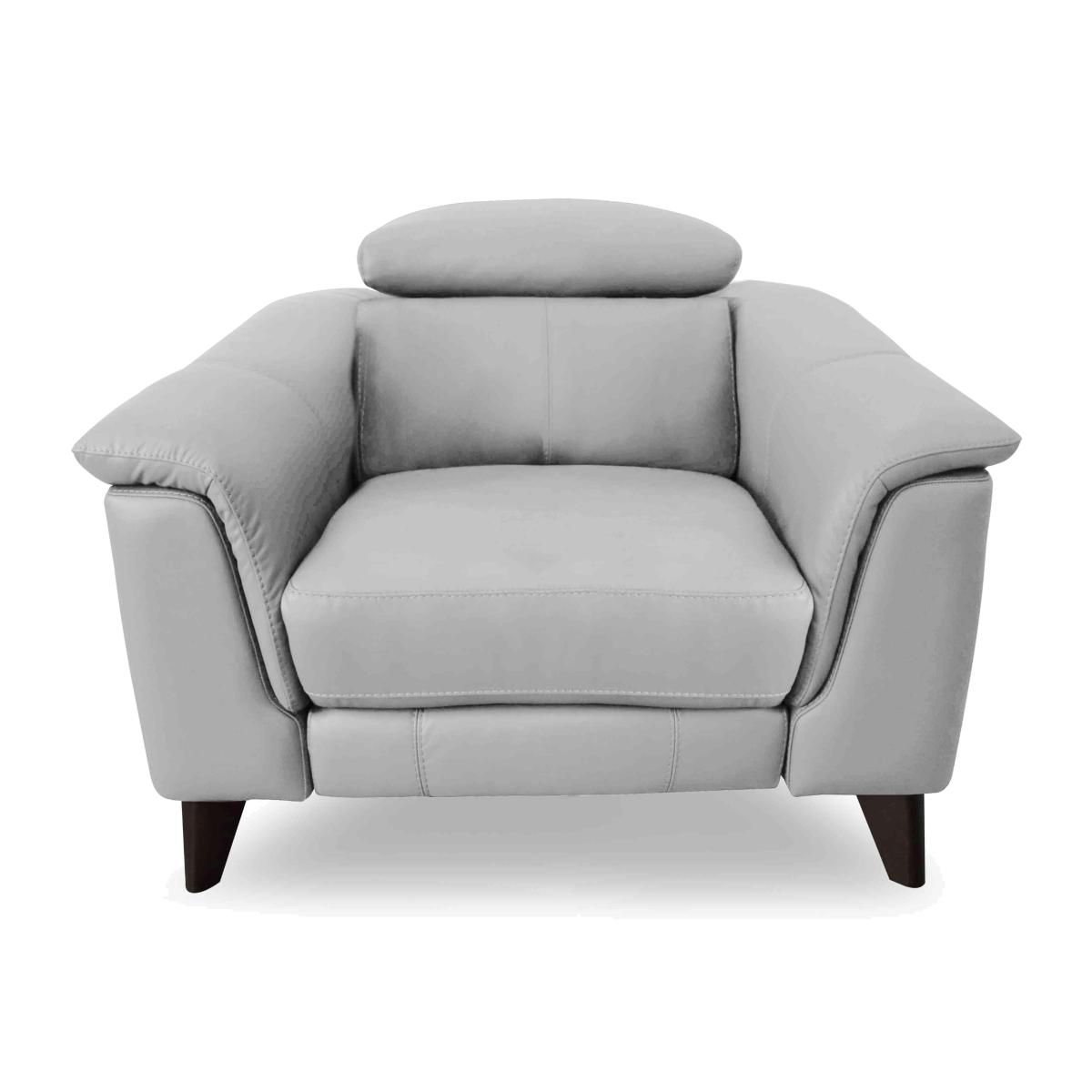 Our Wade range delivers power comfort that fits in any size of living room. With wall-away power recliners and adjustable headrests, the collection’s space-saving sofas and armchair help you find your perfect relaxed position – and sit neatly against a living room wall. And even when you’re not reclining, you’ll enjoy maximum comfort thanks to sprung seats, supportive cushioning and those wide, well-padded arms. Wade’s look is also very appealing, with a fashionable off-the-floor design and angled legs. Available in a huge choice of leather and fabric options, the collection also includes handy storage footstools. The fantastic-value Wade range is handmade and only at Furniture Village. Meet your new leather armchair. Designed to make a big impact in a smaller space, it has a wall-away power recliner, adjustable headrest and sprung seat. Handmade. Why you'll love it Laid-back style and comfort at a fantastic price. Power recliner and adjustable headrest for relaxation perfection. Seat and back suspension provide perfect support. 100% leather upholstery in a huge choice of finishes and colours. Space-saving wall-away design brings recliner comfort to even compact spaces. USB charging on power recliner. Also available without the power recliner. Handmade for Furniture Village. This leather power recliner chair is part of our Wade range. What you need to know Medium comfort level. Seat suspension: no-sag spring. Seat cushioning: foam, fibre and inner coil. Seat cushions are fixed. Back suspension: rubber webbing. Back cushioning: foam and fibre. Back cushions are fixed. Feet are removable. USB charging is only available with the power version of this chair. Please allow time for the recliner mechanism to ease. Minor gaps are necessary to ensure ease of motion and may be exaggerated depending on floor type. Leather has unique marks and characteristics with variance in colour and texture. Leather softens with use. Smoothing the tops of leather cushions prevents signs of visual comfort. Fixed seat and back cushions require smoothing and straightening regularly. To smooth and straighten fixed cushions, punch the back cushion’s top two corners and the seat cushion’s outer two corners, and pinch outwards. Please read our upholstery care guide for more advice.
