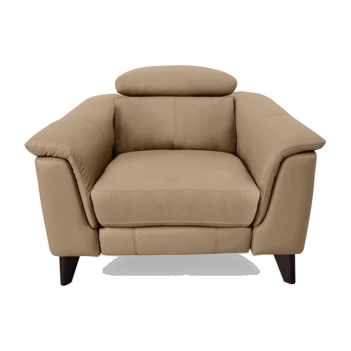 Our Wade range delivers power comfort that fits in any size of living room. With wall-away power recliners and adjustable headrests, the collection’s space-saving sofas and armchair help you find your perfect relaxed position – and sit neatly against a living room wall. And even when you’re not reclining, you’ll enjoy maximum comfort thanks to sprung seats, supportive cushioning and those wide, well-padded arms. Wade’s look is also very appealing, with a fashionable off-the-floor design and angled legs. Available in a huge choice of leather and fabric options, the collection also includes handy storage footstools. The fantastic-value Wade range is handmade and only at Furniture Village. Meet your new leather armchair. Designed to make a big impact in a smaller space, it has a wall-away power recliner, adjustable headrest and sprung seat. Handmade. Why you'll love it Laid-back style and comfort at a fantastic price. Power recliner and adjustable headrest for relaxation perfection. Seat and back suspension provide perfect support. 100% leather upholstery in a huge choice of finishes and colours. Space-saving wall-away design brings recliner comfort to even compact spaces. USB charging on power recliner. Also available without the power recliner. Handmade for Furniture Village. This leather power recliner chair is part of our Wade range. What you need to know Medium comfort level. Seat suspension: no-sag spring. Seat cushioning: foam, fibre and inner coil. Seat cushions are fixed. Back suspension: rubber webbing. Back cushioning: foam and fibre. Back cushions are fixed. Feet are removable. USB charging is only available with the power version of this chair. Please allow time for the recliner mechanism to ease. Minor gaps are necessary to ensure ease of motion and may be exaggerated depending on floor type. Leather has unique marks and characteristics with variance in colour and texture. Leather softens with use. Smoothing the tops of leather cushions prevents signs of visual comfort. Fixed seat and back cushions require smoothing and straightening regularly. To smooth and straighten fixed cushions, punch the back cushion’s top two corners and the seat cushion’s outer two corners, and pinch outwards. Please read our upholstery care guide for more advice.