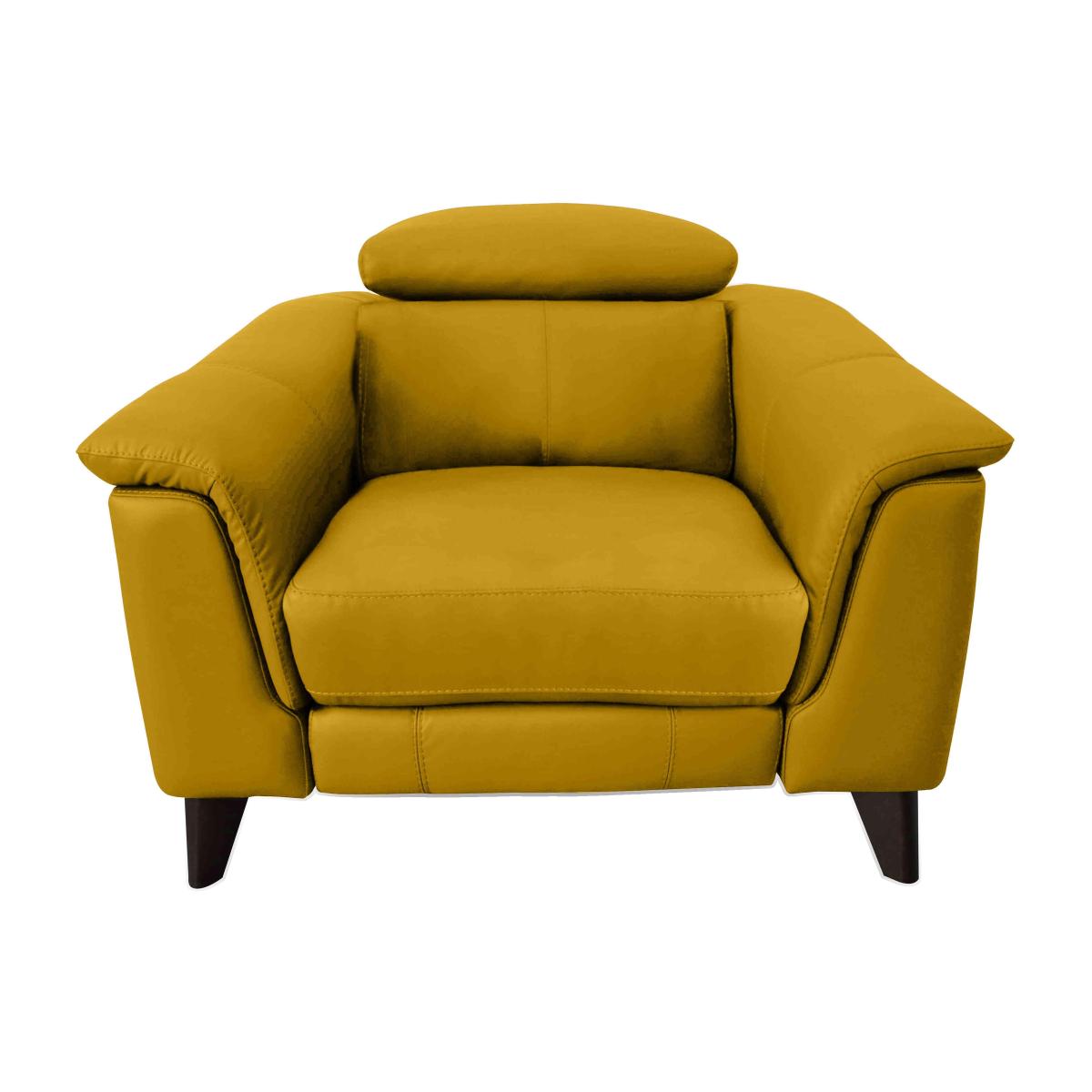 Our Wade range delivers power comfort that fits in any size of living room. With wall-away power recliners and adjustable headrests, the collection’s space-saving sofas and armchair help you find your perfect relaxed position – and sit neatly against a living room wall. And even when you’re not reclining, you’ll enjoy maximum comfort thanks to sprung seats, supportive cushioning and those wide, well-padded arms. Wade’s look is also very appealing, with a fashionable off-the-floor design and angled legs. Available in a huge choice of leather and fabric options, the collection also includes handy storage footstools. The fantastic-value Wade range is handmade and only at Furniture Village. Meet your new leather armchair. Designed to make a big impact in a smaller space, it has a wall-away power recliner, adjustable headrest and sprung seat. Handmade. Why you'll love it Laid-back style and comfort at a fantastic price. Power recliner and adjustable headrest for relaxation perfection. Seat and back suspension provide perfect support. 100% leather upholstery in a huge choice of finishes and colours. Space-saving wall-away design brings recliner comfort to even compact spaces. USB charging on power recliner. Also available without the power recliner. Handmade for Furniture Village. This leather power recliner chair is part of our Wade range. What you need to know Medium comfort level. Seat suspension: no-sag spring. Seat cushioning: foam, fibre and inner coil. Seat cushions are fixed. Back suspension: rubber webbing. Back cushioning: foam and fibre. Back cushions are fixed. Feet are removable. USB charging is only available with the power version of this chair. Please allow time for the recliner mechanism to ease. Minor gaps are necessary to ensure ease of motion and may be exaggerated depending on floor type. Leather has unique marks and characteristics with variance in colour and texture. Leather softens with use. Smoothing the tops of leather cushions prevents signs of visual comfort. Fixed seat and back cushions require smoothing and straightening regularly. To smooth and straighten fixed cushions, punch the back cushion’s top two corners and the seat cushion’s outer two corners, and pinch outwards. Please read our upholstery care guide for more advice.
