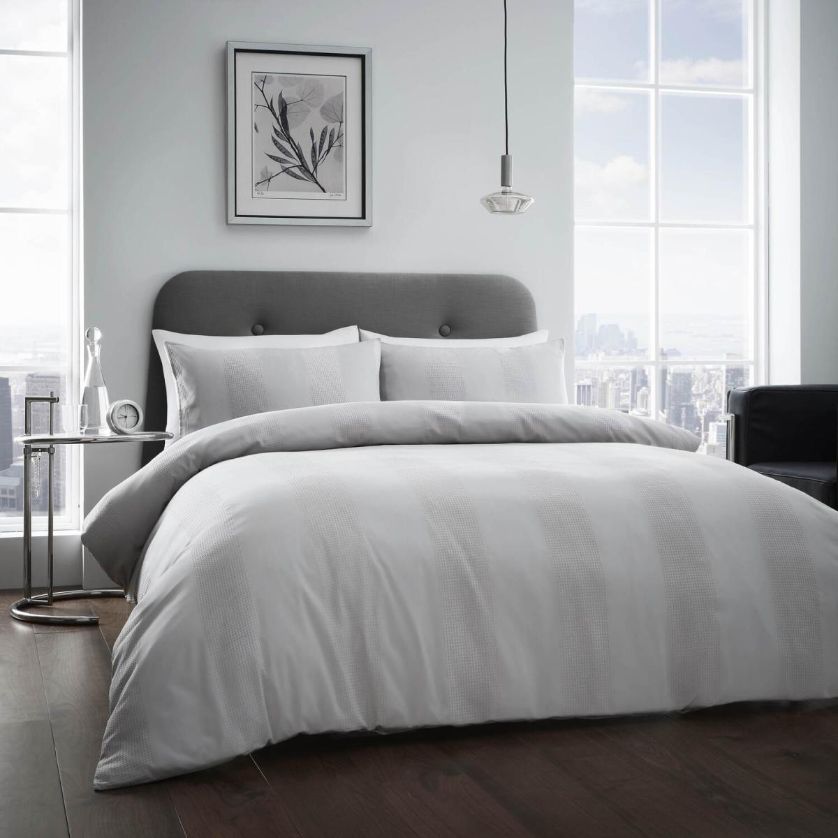 Waffle Stripe Duvet Cover and Pillowcase Set - Grey / King
