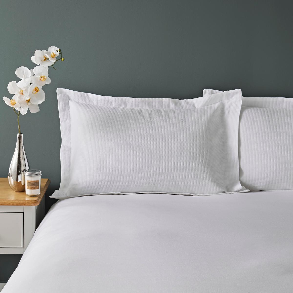Crafted with a beautiful textured waffle fabric, this white pillowcase has a sophisticated woven design and has a matching bedding set available. The easy-care polycotton material has been finished with a new improved method to ensure a soft feel and consistent look wash after wash. This Collection is verified by OEKO-TEX® and independently tested for harmful substances. It stands for customer confidence and high product safety.