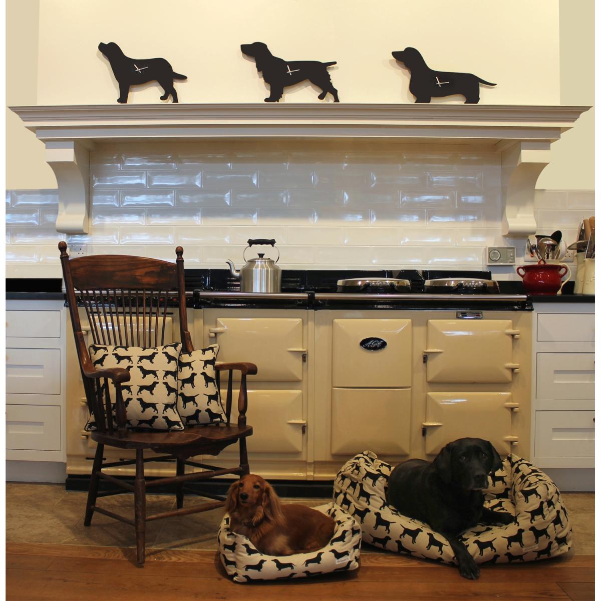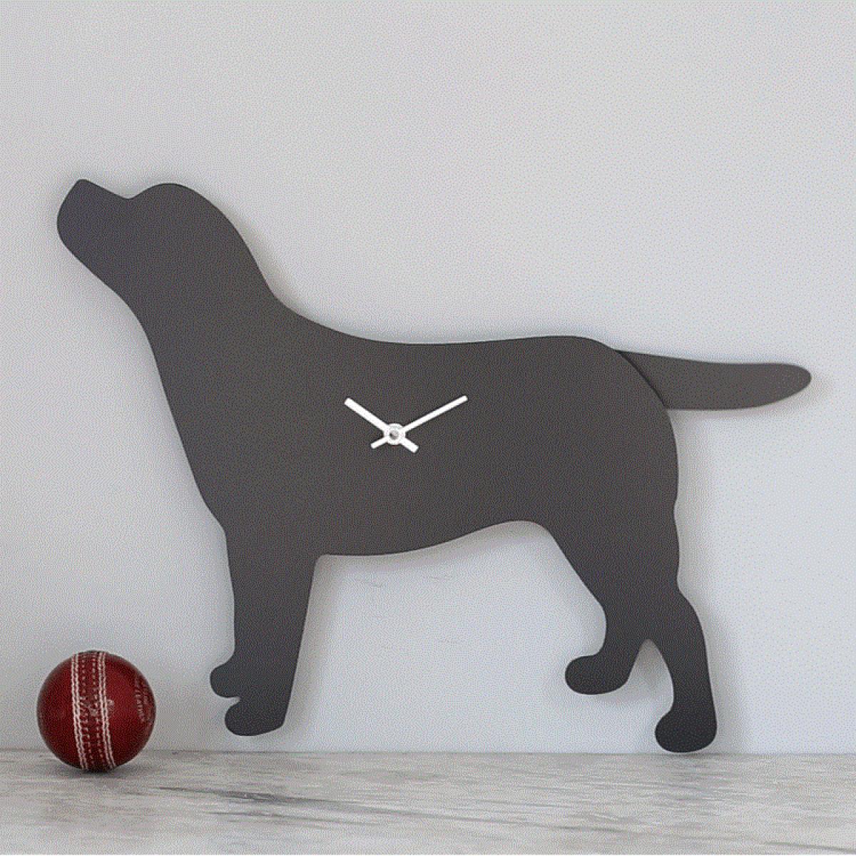 These fantastically fun Labrador Wagging Tail Dog Wall Clocks have a tail that wags on the second. A real must have for the kitchen or family home. This is a delightful unique gift and sure to put a smile on the face of all dog lovers! The main body of this dog wall clock is made from a new British made material called Foamalux. It's light in weight, scratch resistant, versatile, durable and has earned a reputation for quality and will not dull in sunlight. This Labrador shaped Animal Wall Clock is a Cuckooland bestseller!.