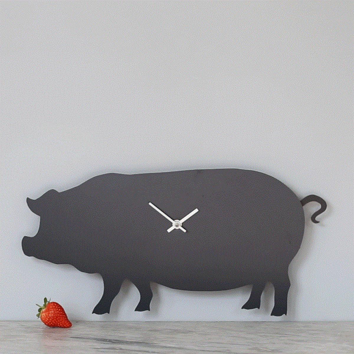 Pig out with this fun loving farm animal. These fantastically gorgeous and unique pig clocks are the perfect additon to any wall, complete with a wagging second tail. A real must have for the kitchen or family home. This is a delightfully unique gift and is sure to put a smile on your face! The main body of this pig clock is made from a new British made material called Foamalux. It's light in weight, scratch resistant, versatile, durable and has earned a reputation for quality and will not dull in sunlight.