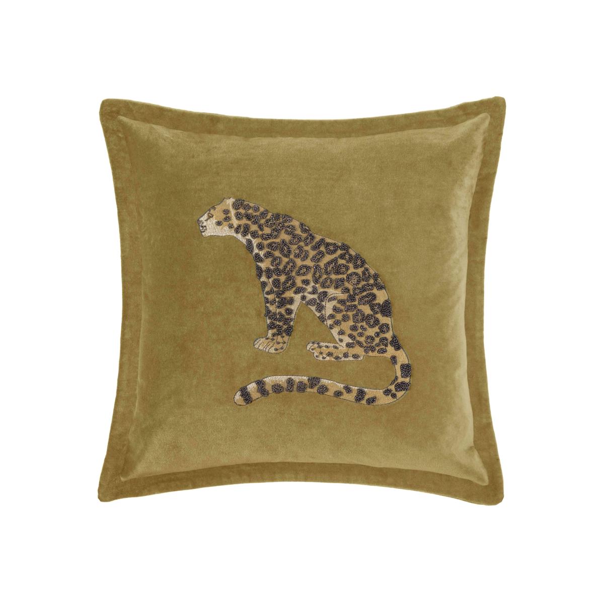 Add a touch of luxury to any spot with the leopard Waghoba cushion. Crafted with sumptuous velvet material, it's hand-embroidered and available in a range of rich tones. Why you'll love it A style everyone will go wild for. Crafted with rich velvet. It’s feather-filled so it’s luxuriously soft inside and out. Embroidered by hand. Sourced and designed in India. In a wide choice of colours to suit any decor. What you need to know 100% polyester. 100% feather filling. Zip closure for easy cleaning and filling adjustments. Made for indoor use. Dry clean only. To maintain cushion plumpness, remove cover and plump cushion interior regularly. Dimensions Height: 55 cm (22 in). Width: 55 cm (22 in).
