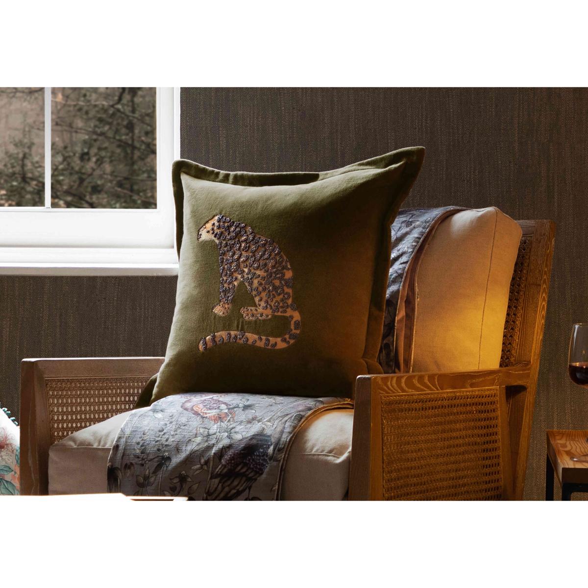 Add a touch of luxury to any spot with the leopard Waghoba cushion. Crafted with sumptuous velvet material, it's hand-embroidered and available in a range of rich tones. Why you'll love it A style everyone will go wild for. Crafted with rich velvet. It’s feather-filled so it’s luxuriously soft inside and out. Embroidered by hand. Sourced and designed in India. In a wide choice of colours to suit any decor. What you need to know 100% polyester. 100% feather filling. Zip closure for easy cleaning and filling adjustments. Made for indoor use. Dry clean only. To maintain cushion plumpness, remove cover and plump cushion interior regularly. Dimensions Height: 55 cm (22 in). Width: 55 cm (22 in).