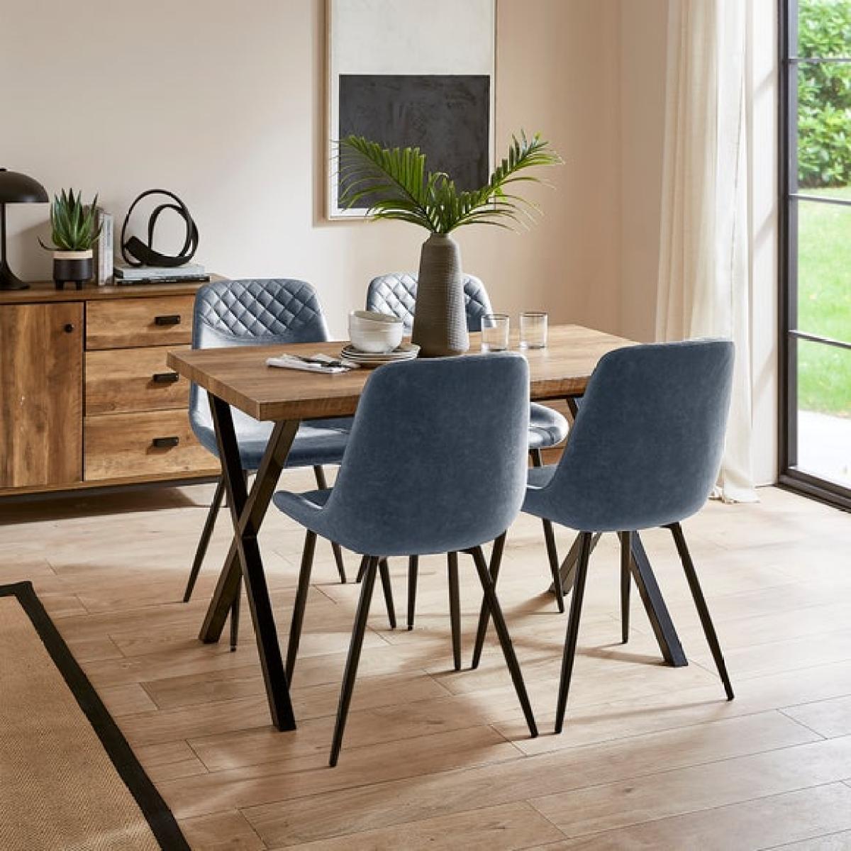 I love this set of four dining chairs for their sleek, modern silhouette and versatile faux leather finish, which makes them a practical choice for everyday use. They work particularly well in contemporary or Scandi-inspired interiors, where their understated style can be complemented with textured textiles or colourful accessories. For styling tips, try layering with patterned or coloured cushions to add warmth and personality, or pairing them with a rustic wooden table to create a balanced, understated look. Their neutral tone makes them easy to incorporate into various colour schemes, while their sturdy yet elegant design ensures both comfort and durability for regular family meals or dinner parties.